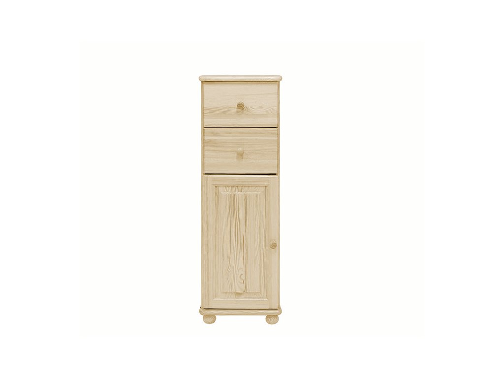 Komoda z masívu Šumava 23 je vyrobená z masívneho borovicového dreva a povrchovo upravená ekologickým bezfarebným lakom. Tento lak ponechá komode jej prirodzený vzhľad a ochráni ju pred prípadným poškriabaním. Komoda ponúka priestrannú skrinku s ozdobným frézovaním na dvierkach a dve zásuvky s kvalitnými kovovými bežcami na jednoduché vysúvanie. Čelá zásuviek majú úchyty v tvare gule, rovnako ako nohy. Úchyty a nohy sú vyrobené z rovnakého materiálu ako komoda. Zadná strana je vyrobená zo sololitu, čo je drevovláknitá doska.