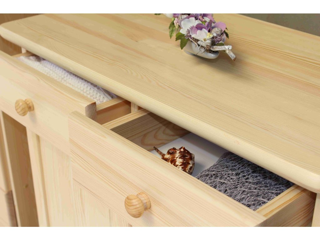 Komoda z masívneho dreva Šumava 60 zaujme veľkým úložným priestorom a prírodným vzhľadom. Prevonia celý domov a stane sa ozdobou každej spálne , jedálne, detskej izby, chodby a predsiene.