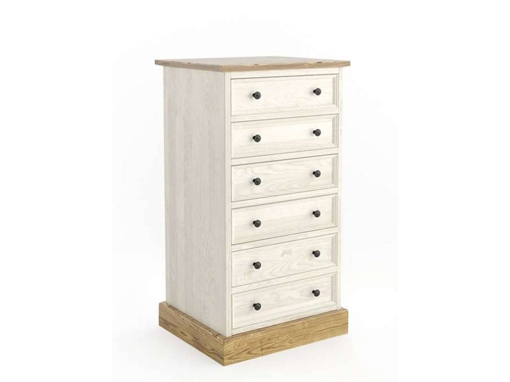 Komoda z masívneho dreva TOSKANIA NUKO je krásnazásuvková komoda z masívneho dreva, ktorá vás očarí svojím dokonalým štýlom a elegantným tvarom s prvkami toskánskeho temperamentu. Komoda je vyrobená z borovicového dreva a ošetrená bielou farbou (zn. STARWAX), alebo v dvojfarebnej verzii (pozri vzorník) - biela - prírodná, biela - hnedá, biela - tmavohnedá. Hnedé odtiene sú SOPUR.