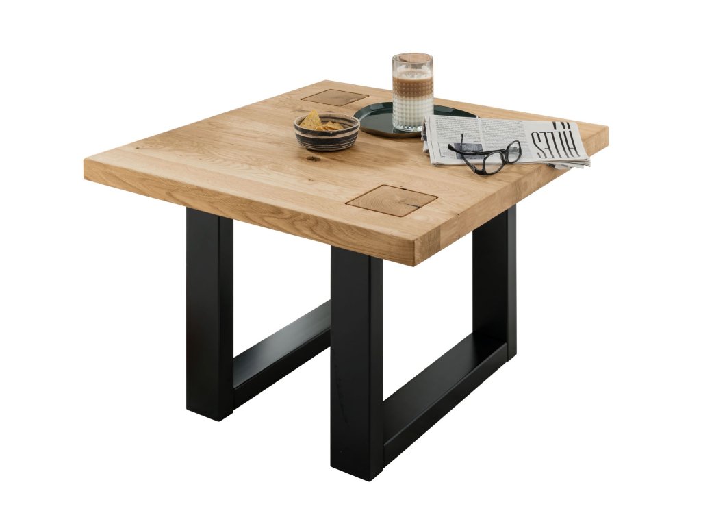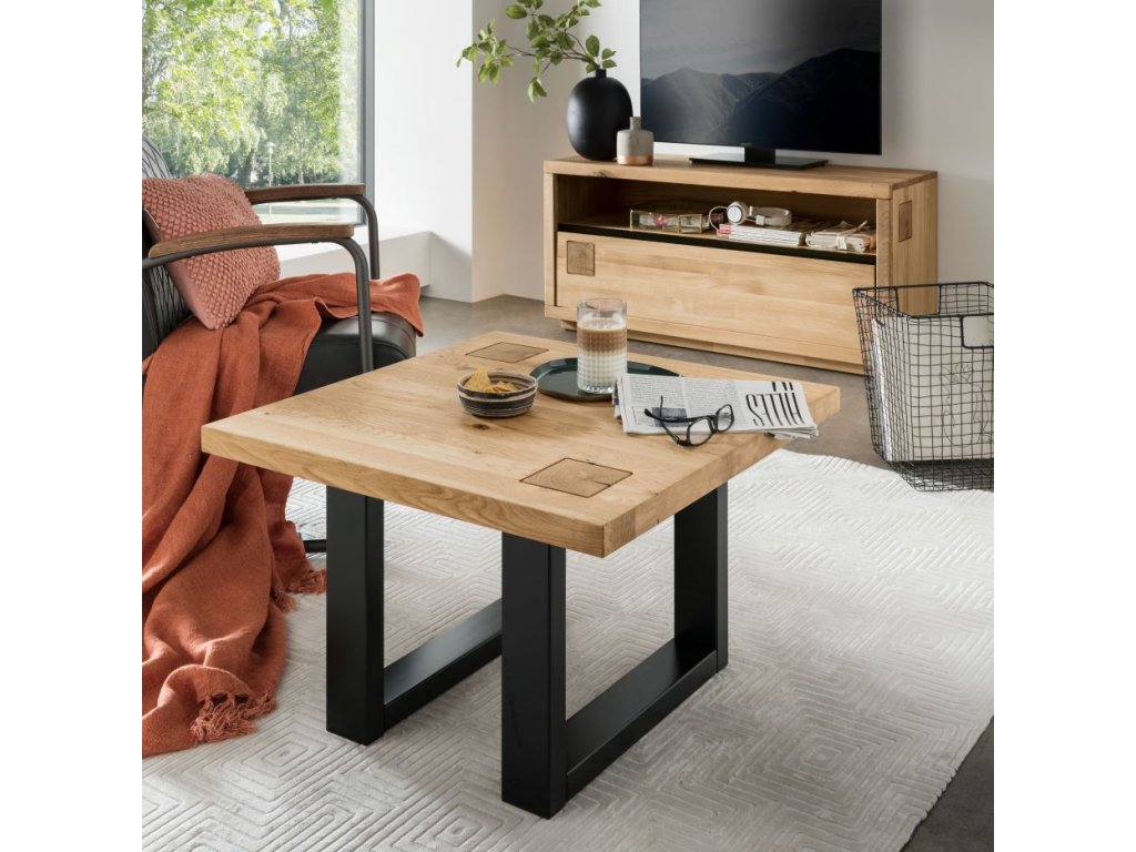 Konferenčný stolík I REGATA zaujme najmä svojou nápaditou konštrukciou. Štvorcová doska z masívneho dubového dreva je doplnená dvoma menšími štvorcami vyrezanými z trámov, ktoré vytvárajú pútavý detail. Spodnú časť stola tvorí podnož v čiernej farbe, ktorá je tiež vyrobená z masívneho dubového dreva, vďaka čomu je stôl ideálnou voľbou nielen do moderných, minimalistických interiérov, ale aj do loftových a industriálnych interiérov.