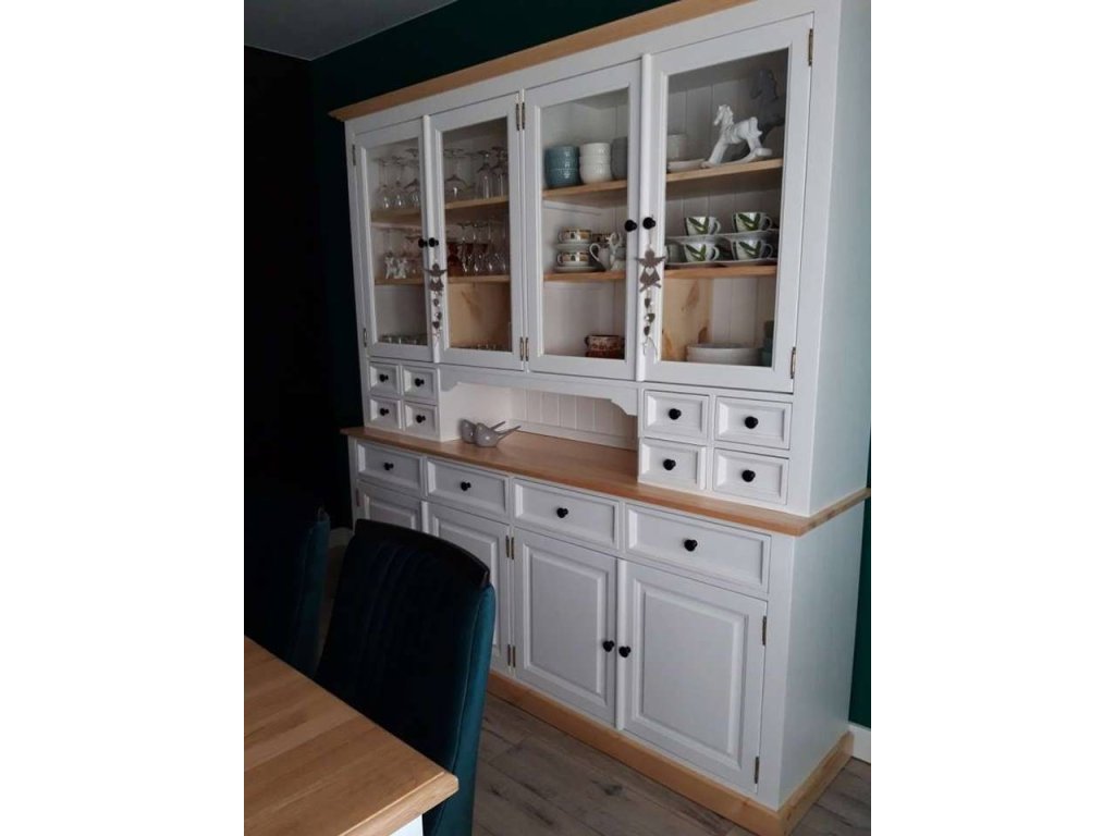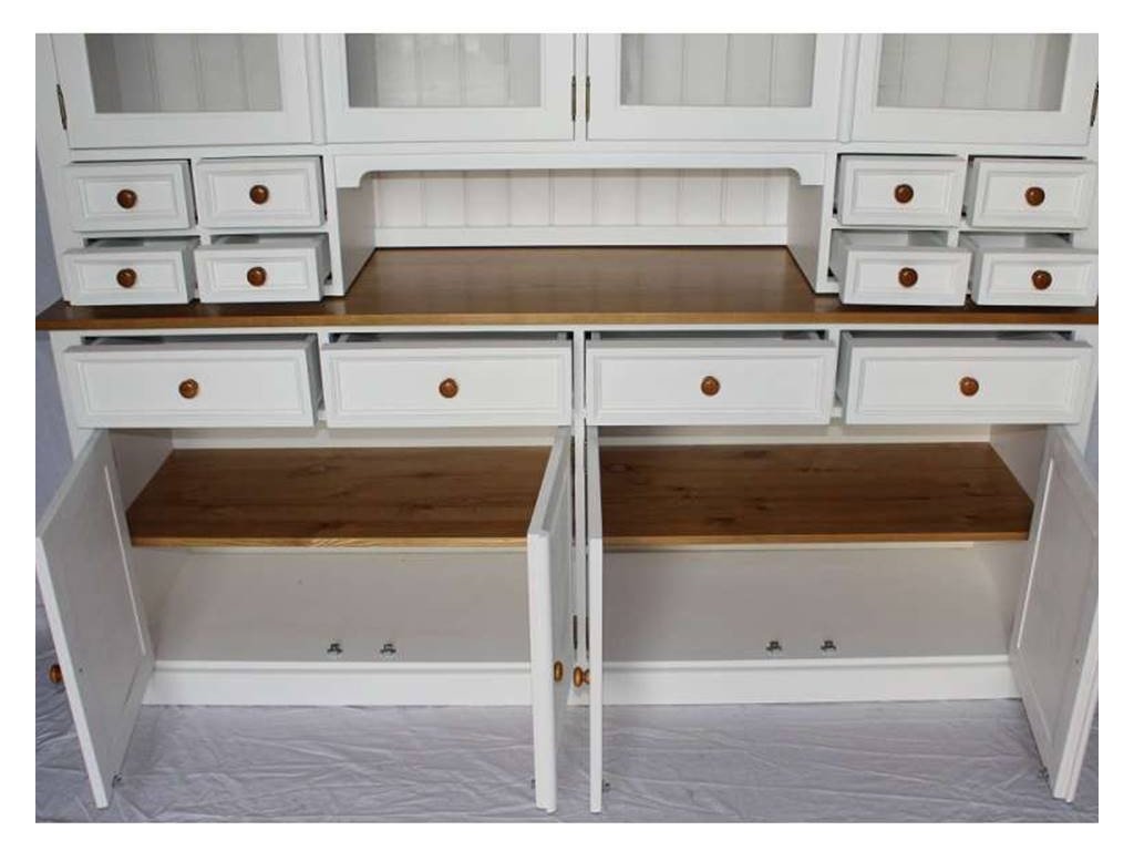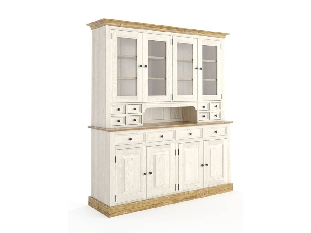 Príborník z masívneho dreva TOSKANIA CASSINI je krásny veľký drevený príborník alebo kredenc, ktorý vás očarí svojím dokonalým štýlom a elegantným tvarom s prvkami toskánskeho temperamentu. Príborník je vyrobený z borovicového dreva a ošetrený bielou farbou (tzv. STARWAX), alebo v dvojfarebnej verzii (pozri vzorník) - biela - prírodná, biela - hnedá, biela - tmavohnedá. Hnedé odtiene sú SOPUR.