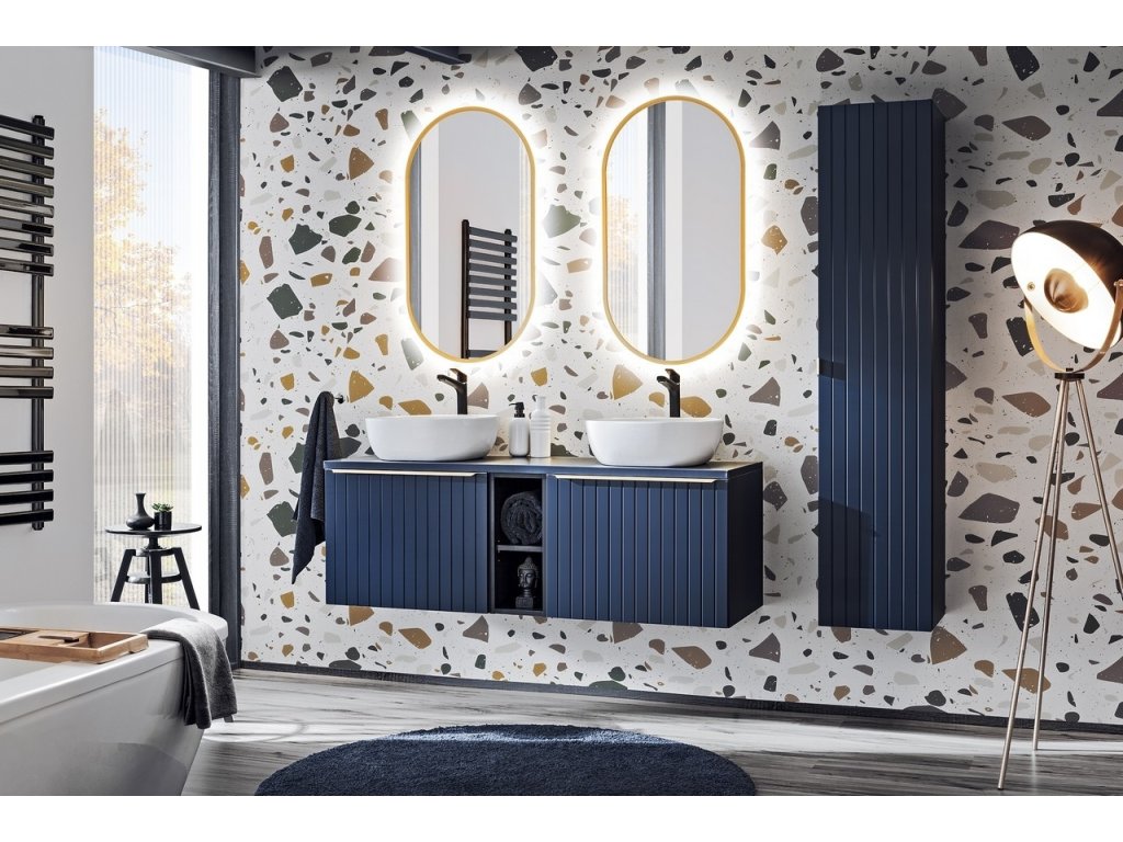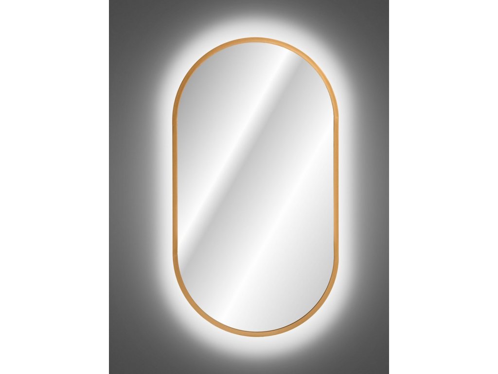 Kúpeľňové zrkadlo Apollo je moderné oválne zrkadlo so zlatým rámom. Zrkadlo obsahujeosvetlenie LED, ktoré poskytuje optimálne podmienky na každodenné líčenie a akékoľvek úpravy vzhľadu. Vďaka svojmu nadčasovému dizajnu možno kúpeľňové zrkadlo Apollo kombinovať praktickys akýmkoľvek kúpeľňovou súpravou.