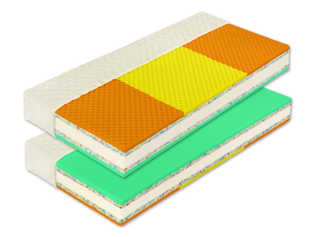 Zelená časť matraca má vyššiu strednú tvrdosť a farebná časť matraca má vyššiu tvrdosť. Matrac je možné kombinovať s pevným lamelovým roštom alebo pevným či polohovateľným lamelovým roštom roštom (mechanickým alebo motorizovaným).