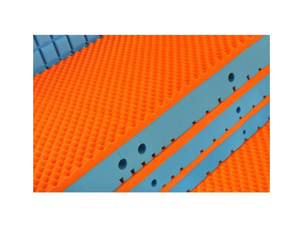 Modrá strana Flexifoam® dosahujúca vlastnosti studenej peny má 7 zón so špeciálnym profilom v tvare kocky CubeCare. Pomáha predchádzať pocitu nadmerného natiahnutia - každá kocka reaguje nezávisle.