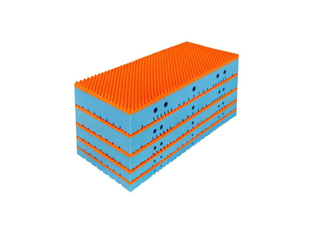 Modrá strana Flexifoam® dosahujúca vlastnosti studenej peny má 7 zón so špeciálnym profilom v tvare kocky CubeCare. Pomáha predchádzať pocitu nadmerného natiahnutia - každá kocka reaguje nezávisle.