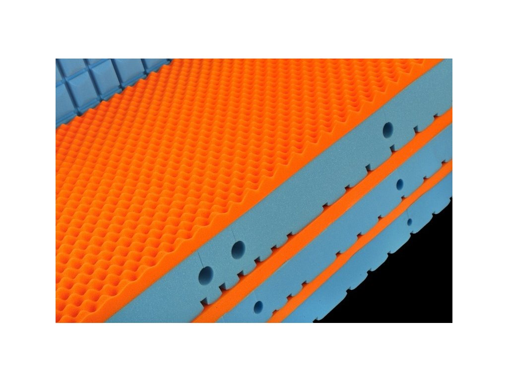 Modrá strana Flexifoam® dosahujúca vlastnosti studenej peny má 7 zón so špeciálnym profilom v tvare kocky CubeCare. Pomáha predchádzať pocitu nadmerného natiahnutia - každá kocka reaguje nezávisle.