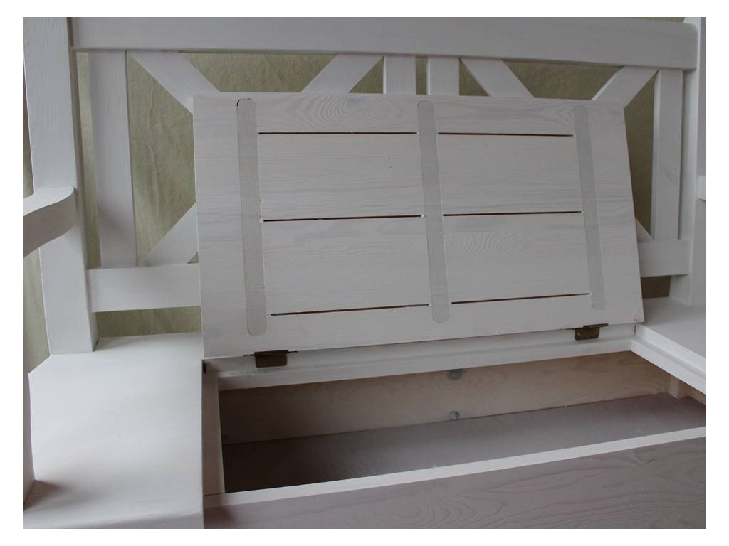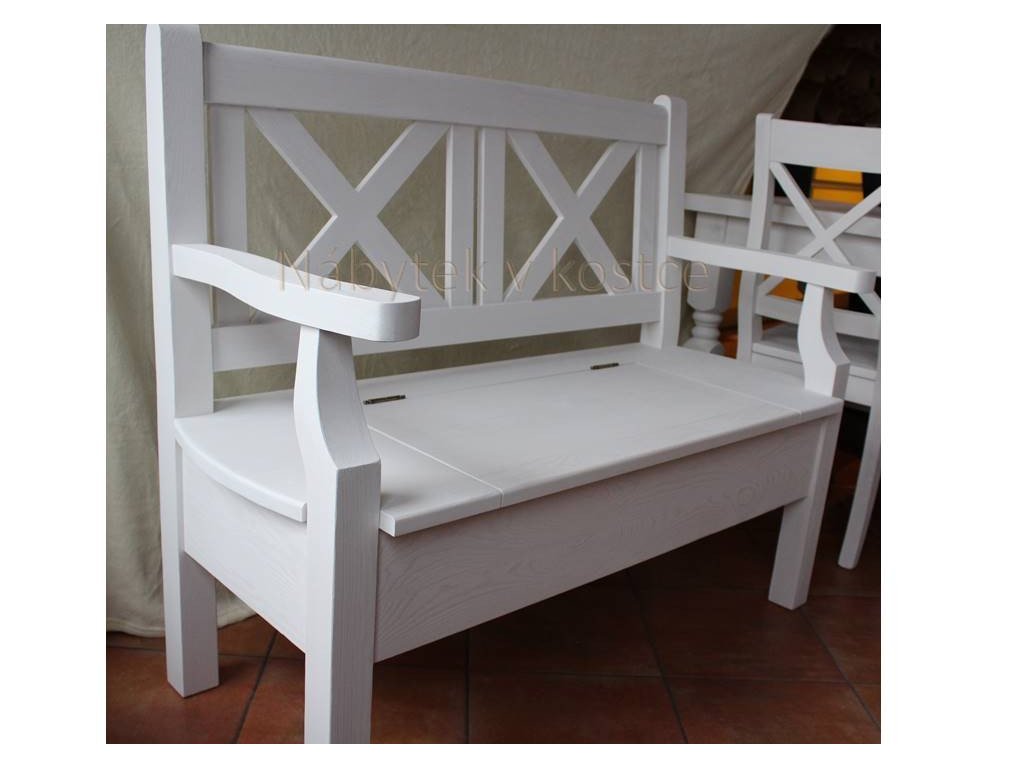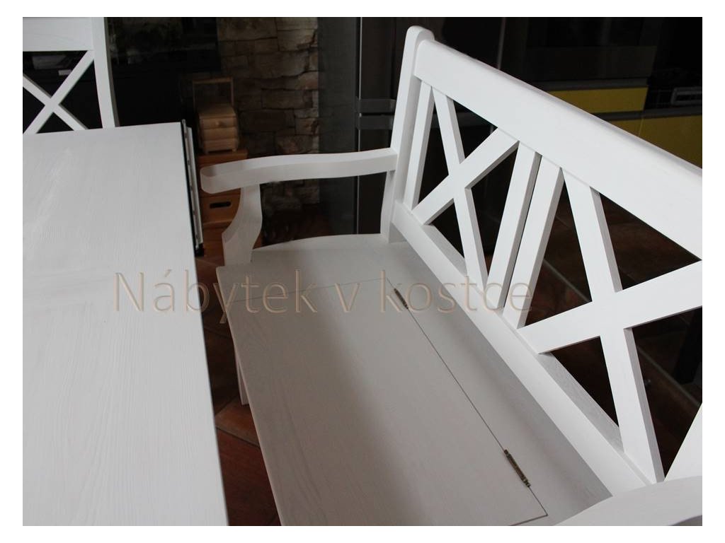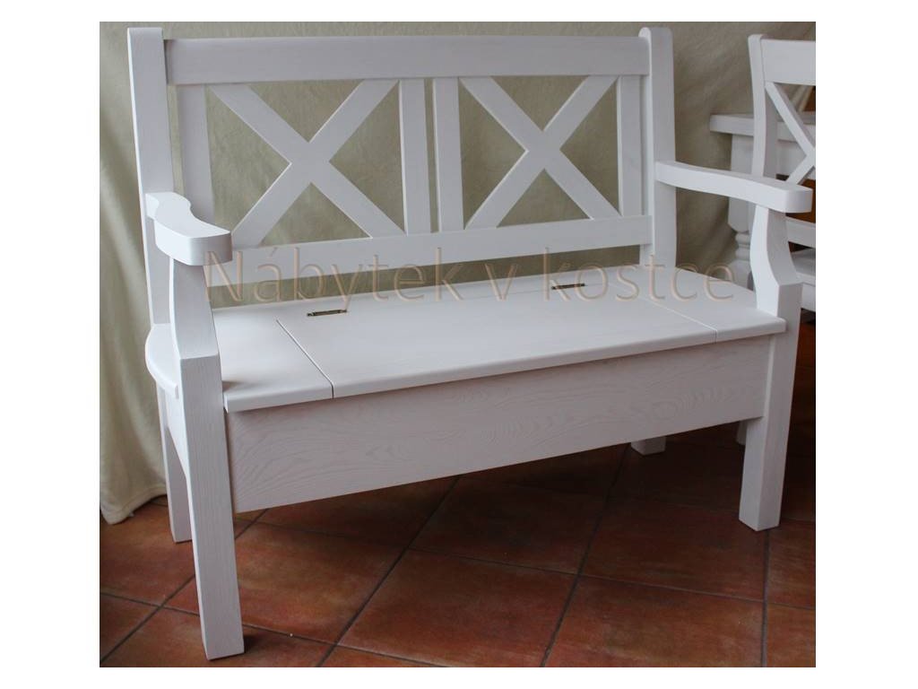 Rustikálna lavica SWEET HOME s úložným priestorom je vyrobený z masívneho borovicového dreva a je ošetrený bielou vodou riediteľnou farbou.