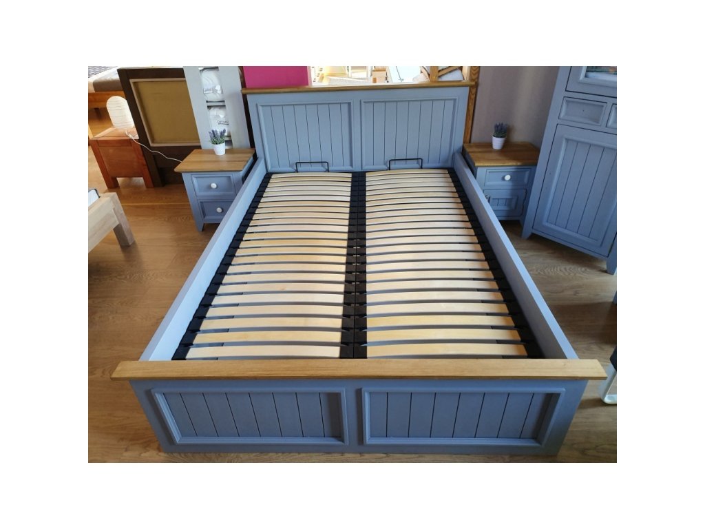 Manželská posteľ z masívneho dreva PROVENCE je nadčasová posteľ pre milovníkov romantických interiérov. Je vyrobený z masívneho bukového dreva, ktoré je natreté bielou alebo šedomodrou akrylovou farbou. Vrchné dosky sú vyrobené z masívneho dubového dreva. Dosky sú tiež ošetrené olejom, vďaka čomu sa ľahko udržiavajú. Stačí ich utrieť vlhkou handričkou.