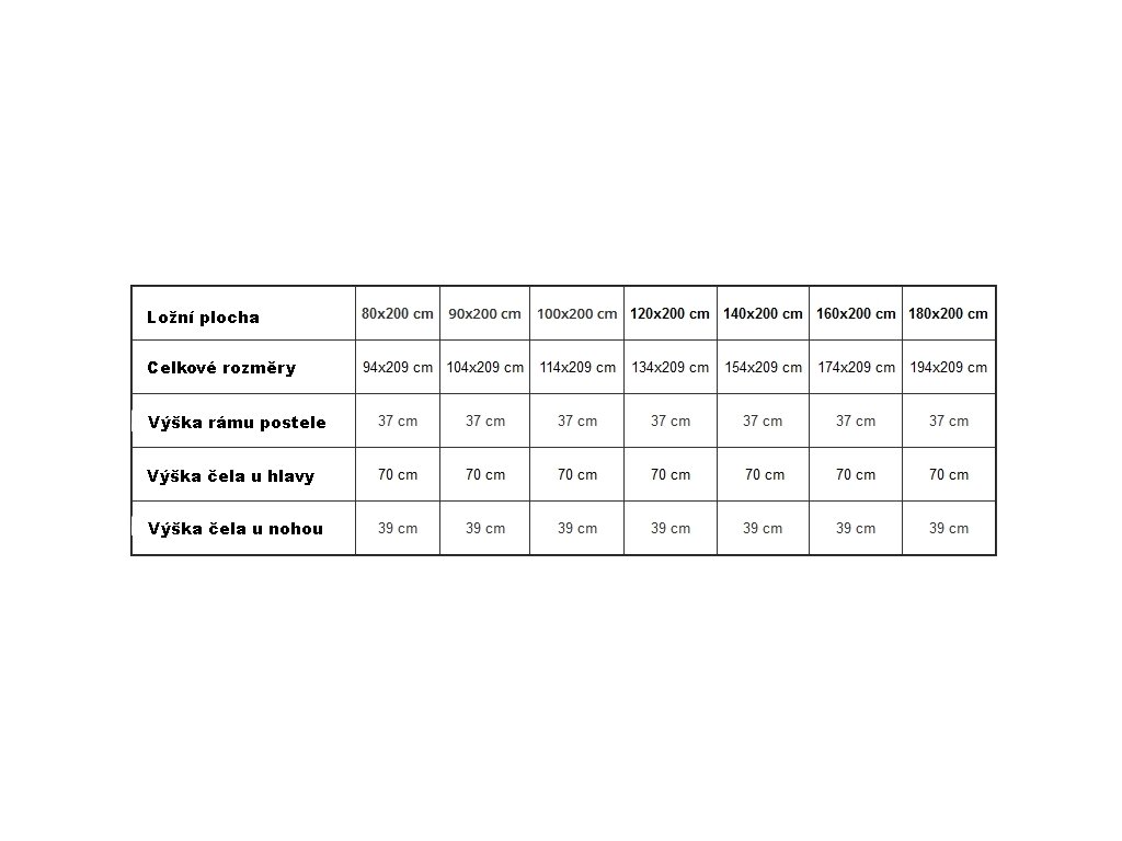 Posteľ Karla ponúkame v rozmeroch 120x200 (ATYP), 140x200, 160x200, 180x200 cm.