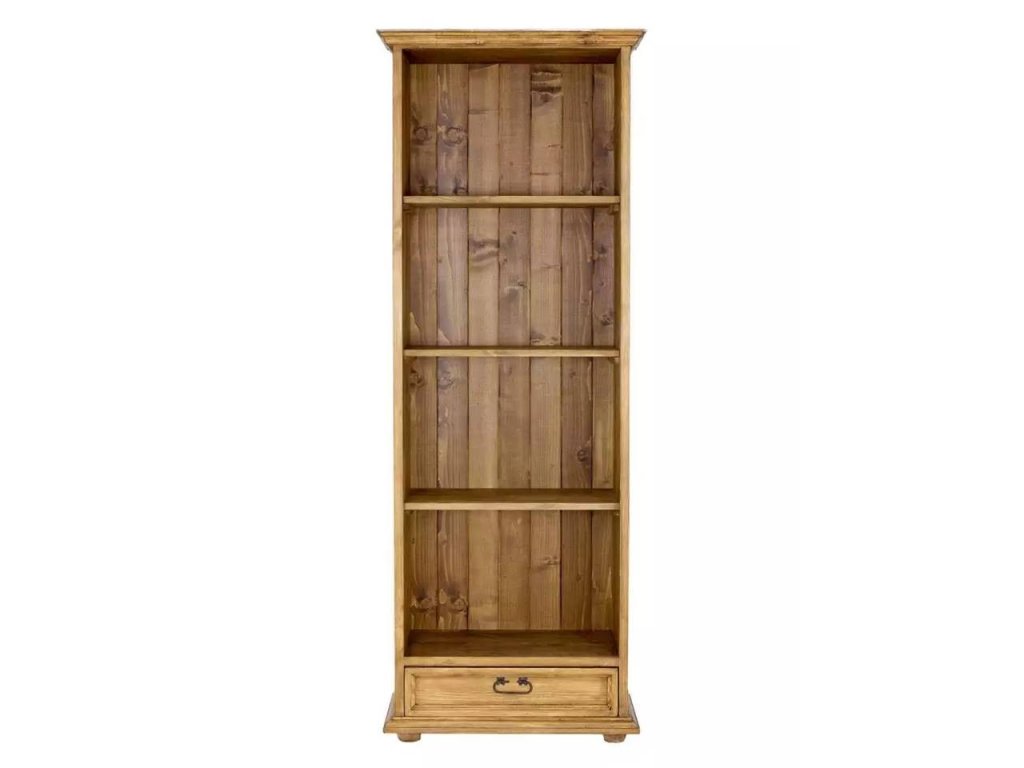 Knižnica CORDOBA Slim je vyrobená z masívneho borovicového dreva (zadná časť knižnice je tiež z dreva) a možno ju ošetriť voskom vo farbe podľa vášho výberu. Vďaka štýlovému kovaniu pôsobí tento nábytok elegantným a nadčasovým dojmom.