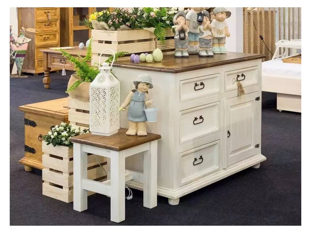 Nábytok WHITE HOME Slim je vysokokvalitný drevený nábytok vyrobený výlučne z masívneho borovicového dreva. O konečnú úpravu nábytku sa postaral prírodný vosk alebo ekologický lak. WHITE HOME je jemný a vkusný nábytok, ktorý vďaka použitiu ručne vyrobeného a špeciálne zdobeného kovania dodá každému interiéru jedinečný šarm. S nábytkom WHITE HOME budú vaše interiéry pôsobiť sviežo, vzdušne a útulne.