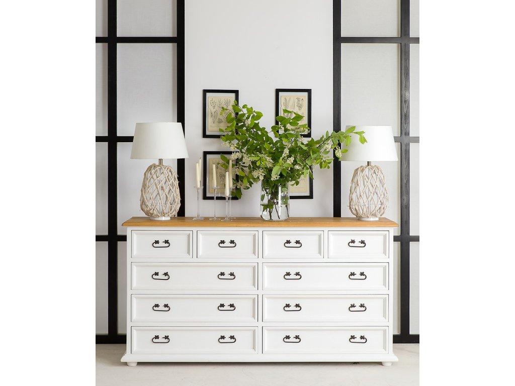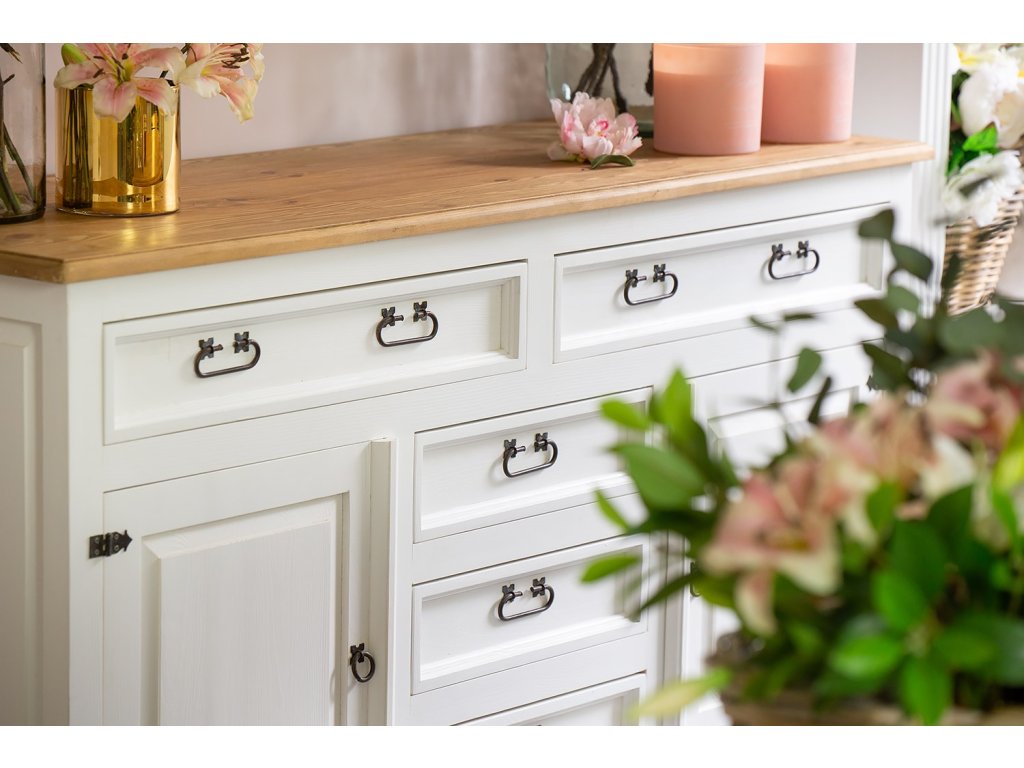 Masívny príborník WHITE HOME Slim je vyrobený z masívnej borovice a možno ho ošetriť voskom vo farbe podľa vášho výberu. Vďaka štýlovému kovaniu pôsobí tento nábytok elegantným a nadčasovým dojmom.