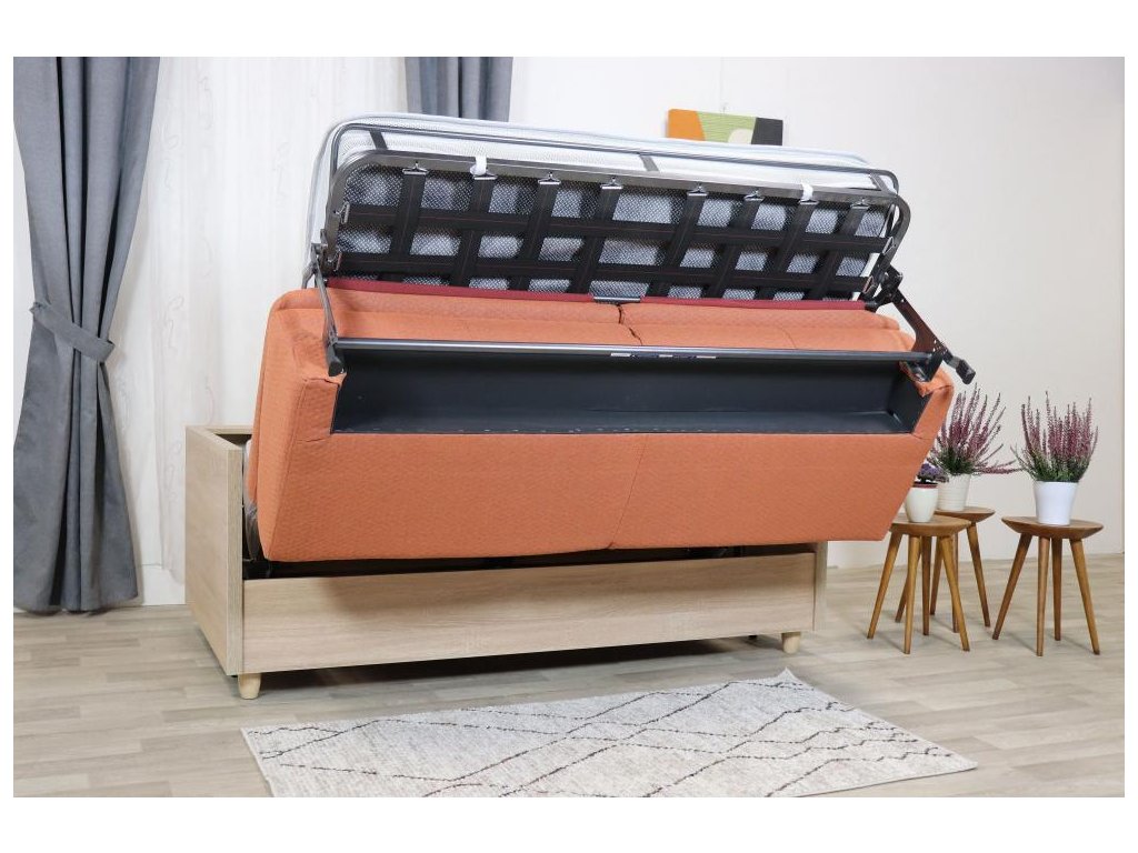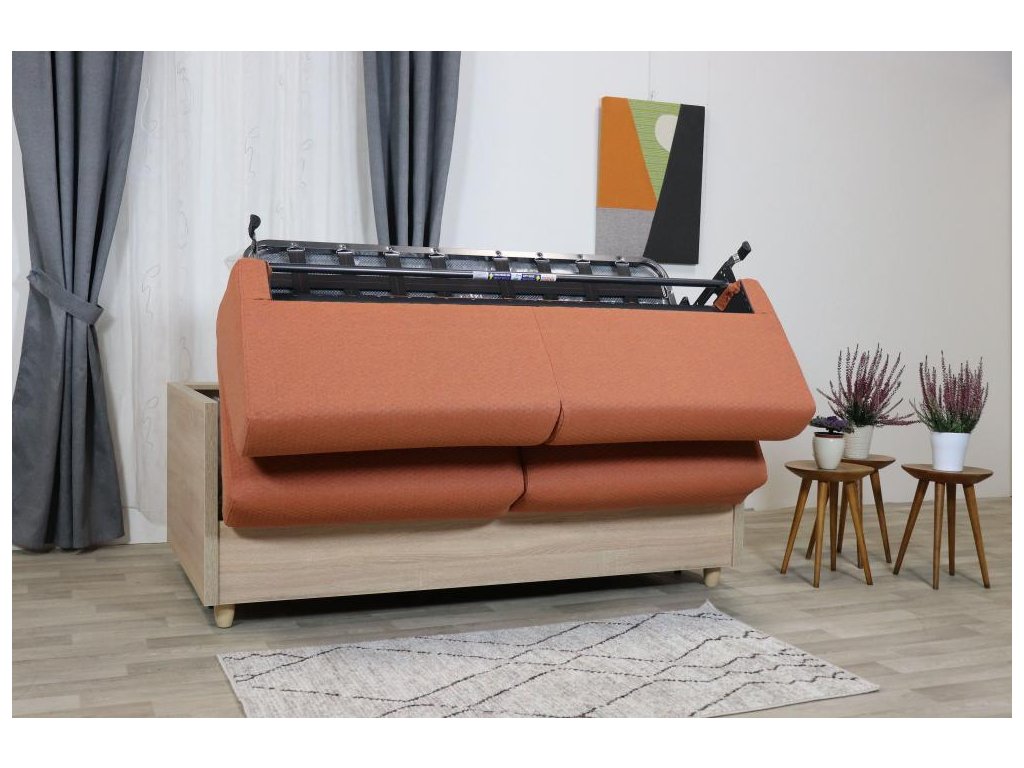 Čalúnený sedák a operadlo sú doplnené telesom a podrúčkami z pevného laminátu, ktoré dodávajú pohovke moderný a nadčasový vzhľad. PohovkaLaura je určená na každodenné spanie, takže je skvelou voľbou do obývacích izieb, garsóniek, hosťovských izieb alebo menších bytov. V základnej ponuke je k dispozícii v dvoch rozmeroch - Laura 173 cm a Laura 193 cm.