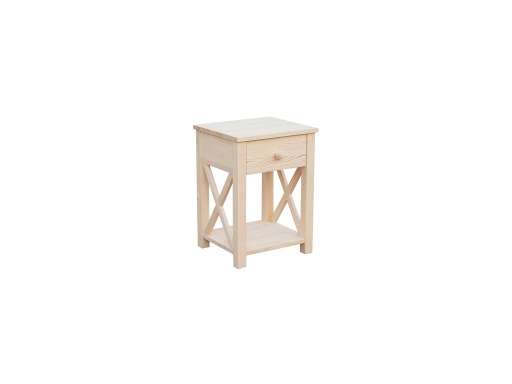 Nočný stolík z borovicového masívu v prírodnej farbe bude dominantou vašej spálne. Stôl má výsuvnú zásuvku na kovových koľajničkách a otvorený úložný priestor v spodnej časti. Tento nočný stolík sa dobre kombinuje s každou posteľou z masívneho dreva.