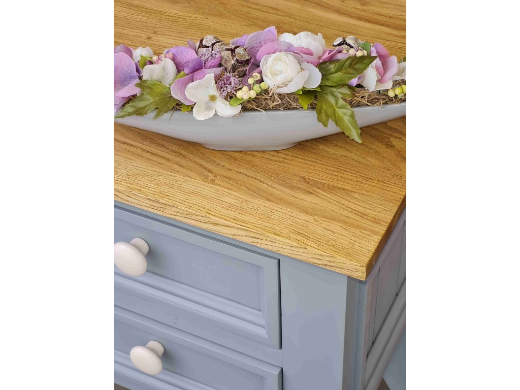 Kolekcia PROVENCE ide o štýlový, vkusný a jemný nábytok v obľúbenom francúzskom štýle. Nábytok PROVENCE je vyrobený z masívneho bukového dreva a ošetrený akrylovou farbou v bielej alebo sivomodrej farbe. Horné hnedé časti sú vyrobené z masívneho dubového dreva a ošetrené lakom. Kombináciou týchto dvoch materiálov sme dosiahli veľmi efektný vzhľad, ktorý nikto neprehliadne