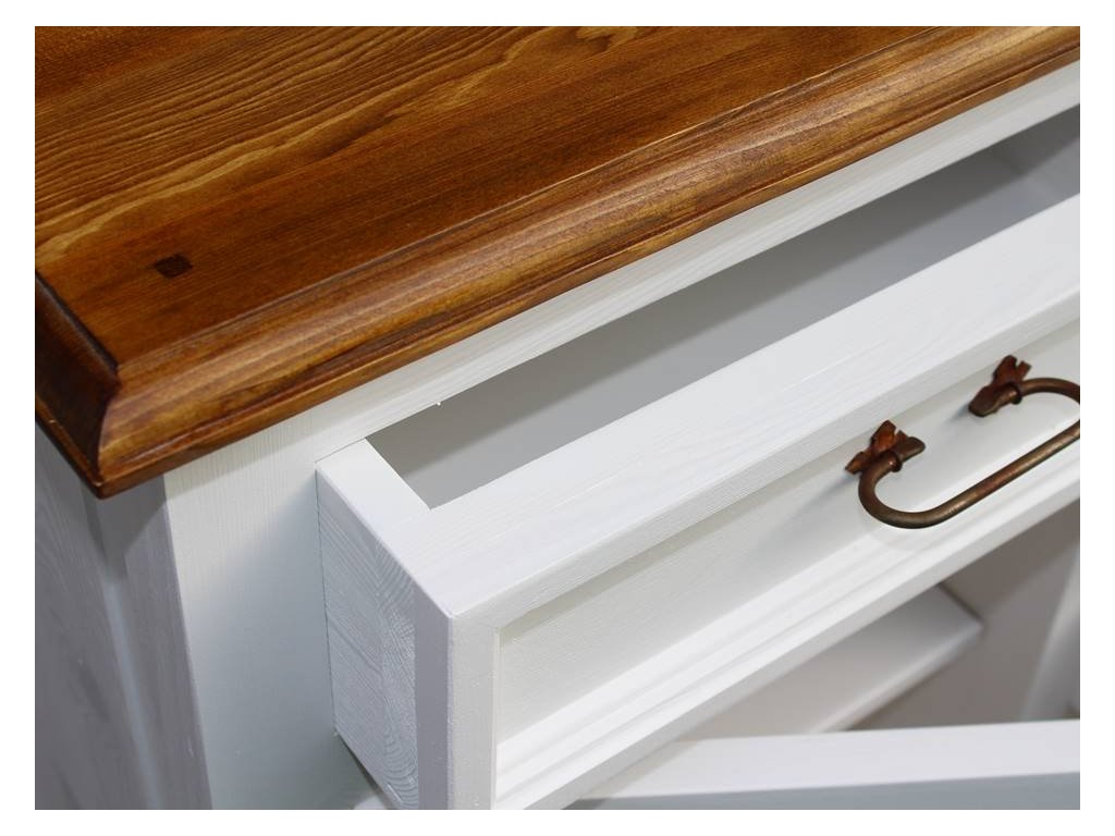 Nočný stolík z masívneho dreva SWEET HOME NAK14 je vyrobený z masívneho borovicového dreva a je ošetrený iba bielou vodou riediteľnou farbou alebo dvojfarebnou kombináciou (pozri vzorkovník). Pre jednoduchšiu údržbu odporúčame objednať nábytok s hnedou vrchnou doskou v lakovanom vyhotovení.
