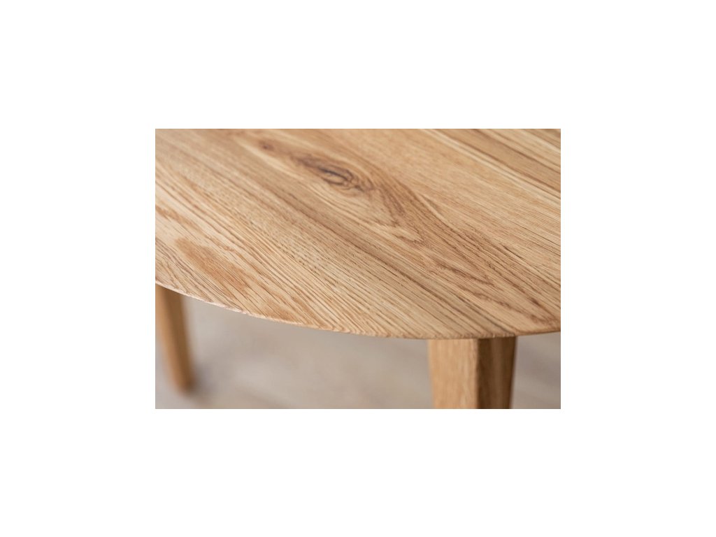 Prírodné kruhy a početné nepravidelné zväzky dodávajú jedálenskému stolu autentický a silný prírodný charakter. Povrch dreva bol ošetrený olejovou vrstvou, ktorá zvýrazňuje tieto jedinečné drevené vzory a poskytuje nábytku dodatočnú ochranu.