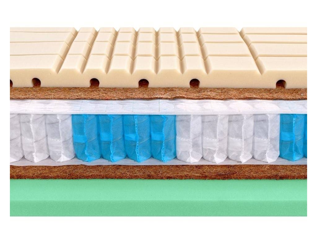 - Kokosová doska. Vrstva 1 cm (tvrdá strana) a 0,5 cm (mäkká strana) stlačeného kokosového vlákna (100 %) dodáva matracu pevnosť a odolnosť.