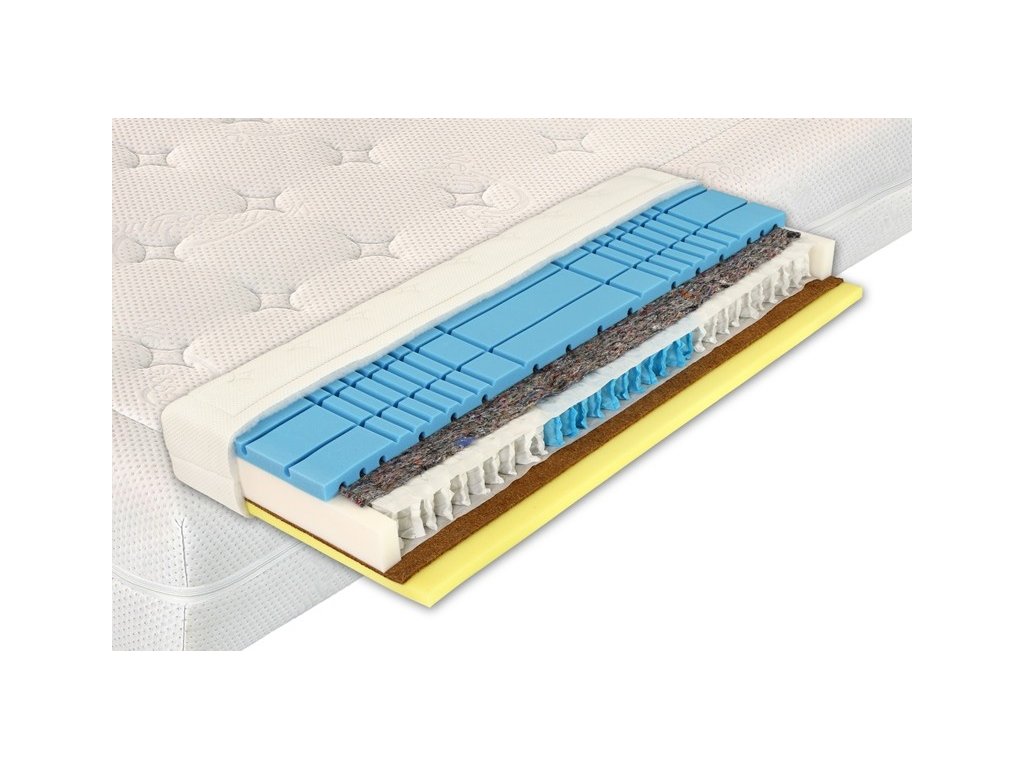 - Pružinové jadro je po stranách vystužené masívnymi spevňujúcimi penovými časťami, ktoré poskytujú oporu pri vstávaní z postele a stabilitu jadra matraca, a tým aj celej postele.