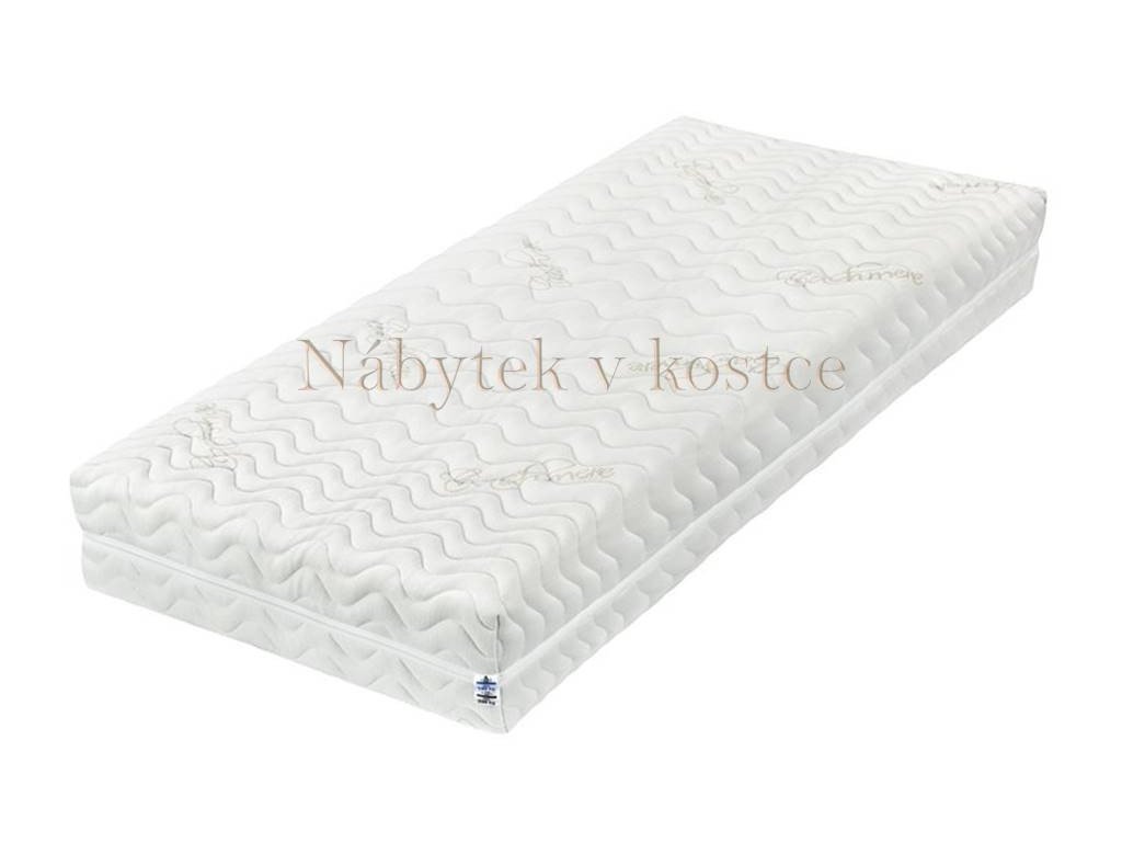 Tkanina Cashmere vznikla spojením kašmírovej vlny a kvalitných moderných materiálov. Oceníte najmä mäkkosť, jednoduchú údržbu, vhodnosť pre alergikov a vynikajúce izolačné vlastnosti poťahovej látky matraca Kašmír - vďaka nim pomáha eliminovať pocit studených nôh u žien, zatiaľ čo muži ocenia, že sa ich telo neprehrieva. Poťah Cashmere je prešívaný vysokogramážnym dutým vláknom.