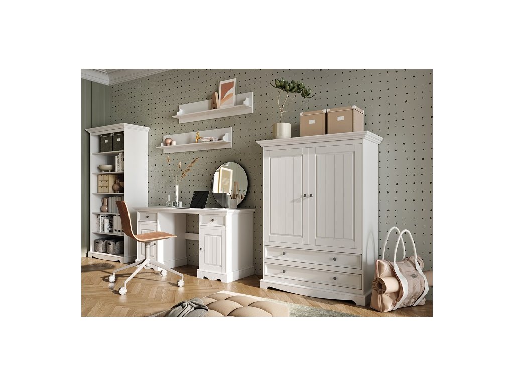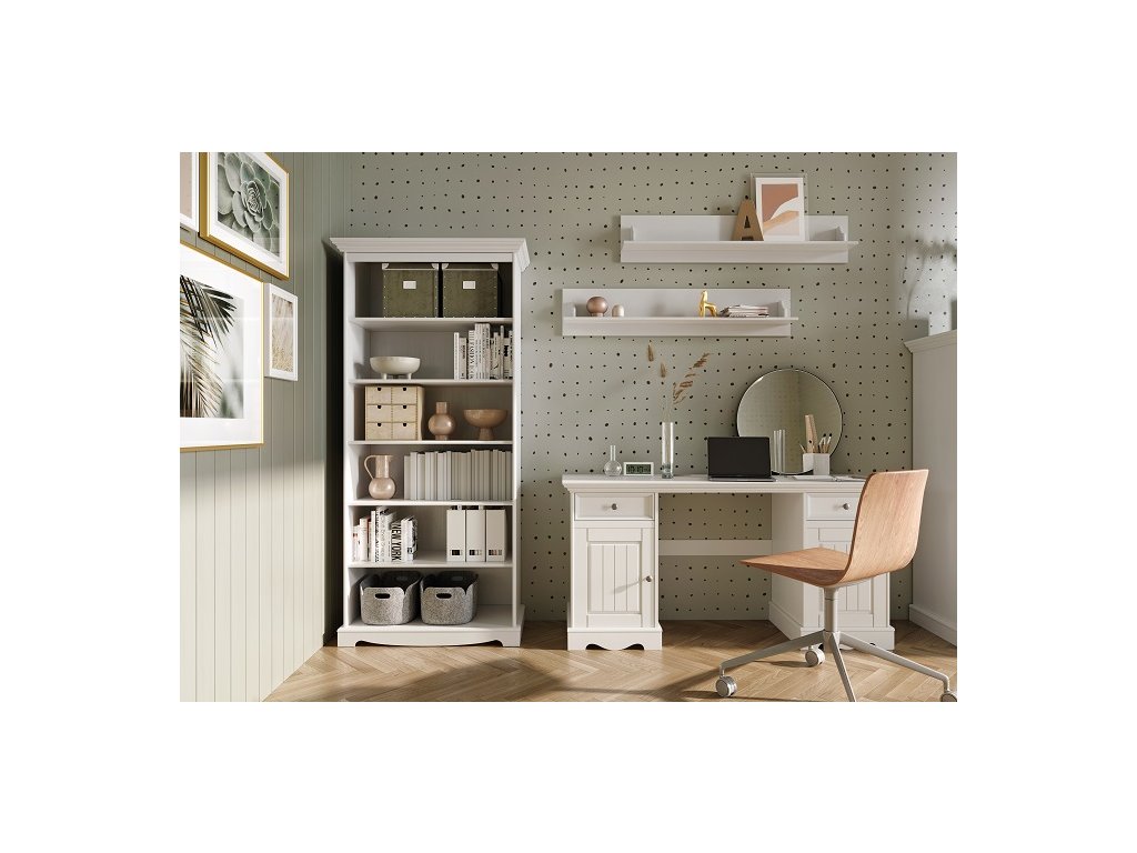 Rustikálny písací stôl BELLUNO Elegante z masívneho dreva je vyrobený z masívnej fínskej borovice. Teplá biela farba, ktorá pokrýva povrch nábytku, krásne vyplní interiéry v provensálskom štýle, ako aj interiéry v škandinávskom štýle. Fínska borovica vyniká svojou odolnosťou a krásnou štruktúrou dreva, ktorú cítiť pri každom dotyku.