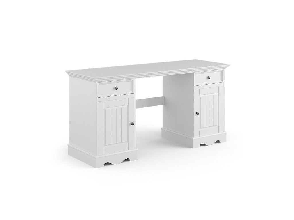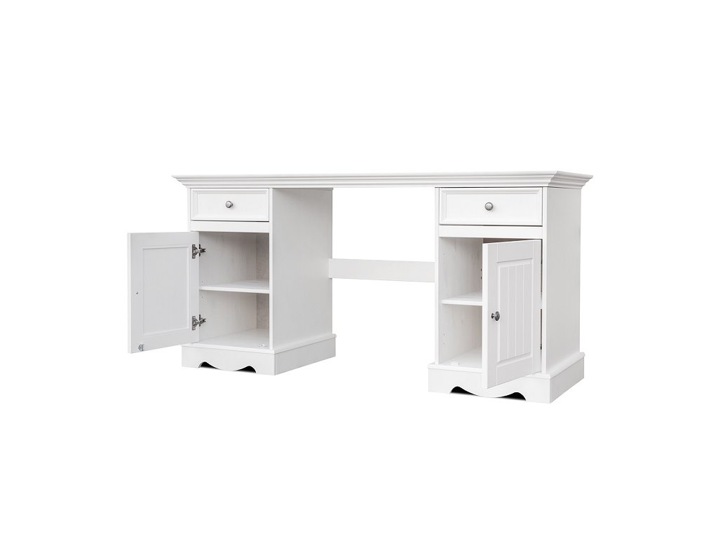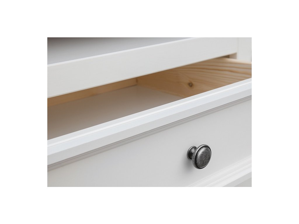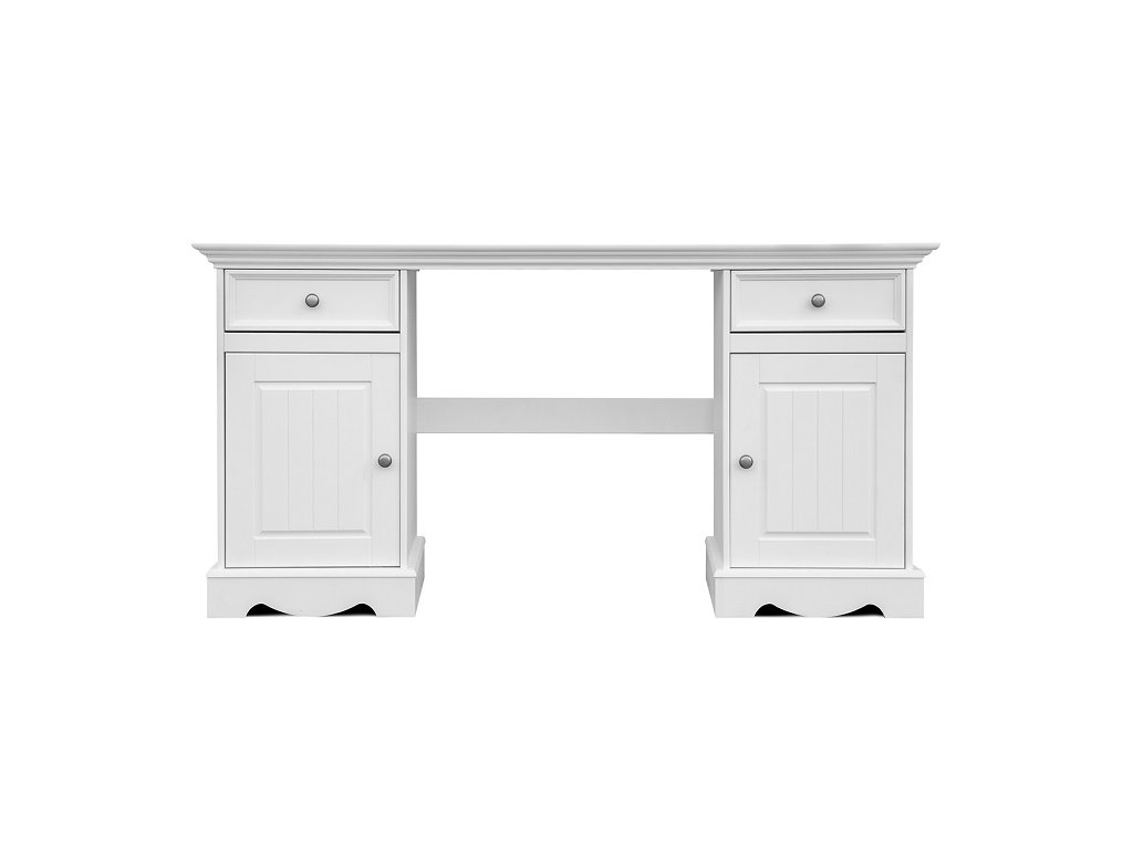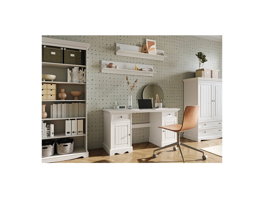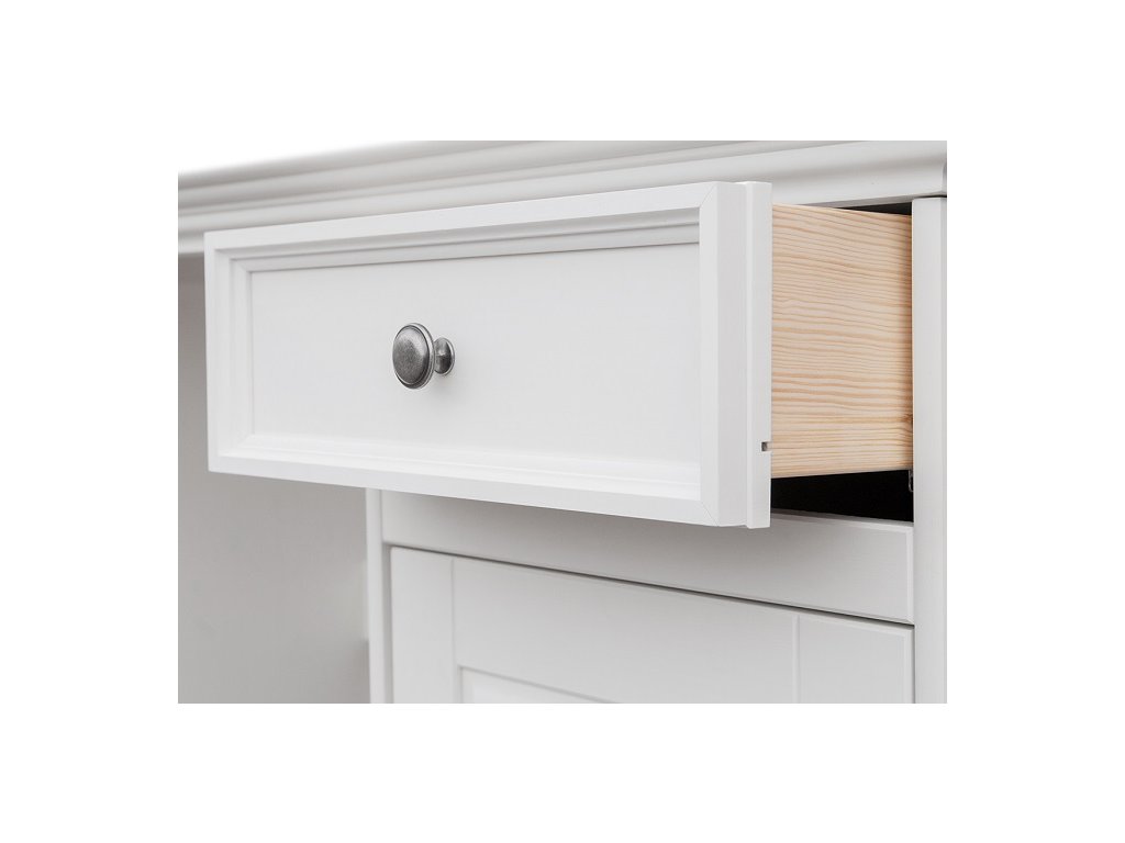 Rustikálny písací stôl BELLUNO Elegante z masívneho dreva je vyrobený z masívnej fínskej borovice. Teplá biela farba, ktorá pokrýva povrch nábytku, krásne vyplní interiéry v provensálskom štýle, ako aj interiéry v škandinávskom štýle. Fínska borovica vyniká svojou odolnosťou a krásnou štruktúrou dreva, ktorú cítiť pri každom dotyku.