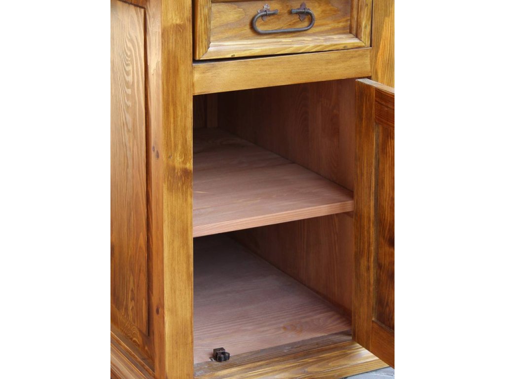 Kolekcia MEXICANA ponúkakvalitný nábytok z masívu, ktorý je vyrobený zo 100 % masívneho dreva, len dná zásuviek a zadné časti skriniek sú z drevenej dyhy. Retro úchytky dodávajú tomuto nábytku štýlový vzhľad, rovnako ako pánty skriniek a komôd, ktoré sú zámerne hrdzavé alebo skorodované, čo vytvára dojem romantického vidieka.