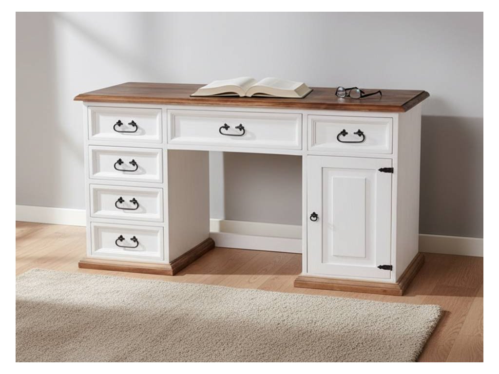 Stôl SWEET HOME BIR14 má množstvo úložných priestorov. Dvierka a zásuvky majú ozdobné frézovanie, ktoré dodáva stolu rustikálny charakter a romantický vzhľad.