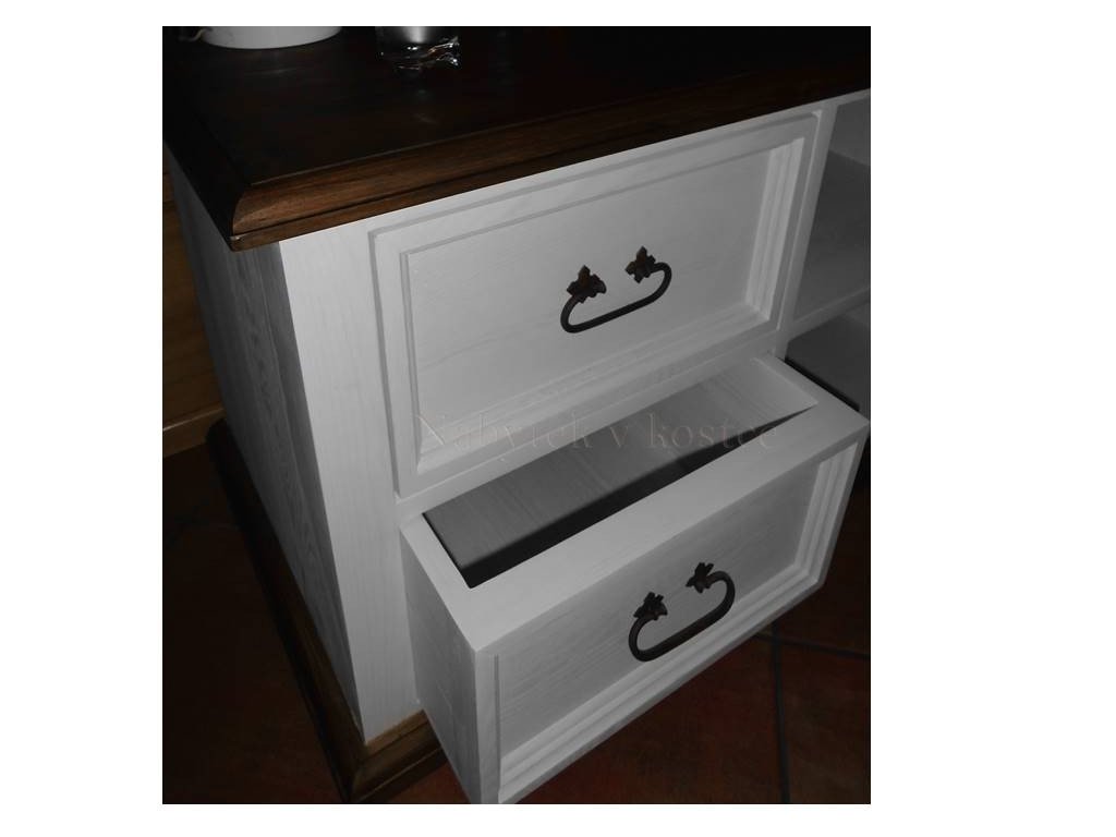 Rustikálne police SWEET HOME z kolekcie SWEET HOME osloví tých, ktorí majú radi bývanie vo vidieckom štýle. Romantický nábytok v kombinácii bielej a hnedej farby navodzuje nezabudnuteľnú atmosféru starých čias a tiež nádych francúzskeho vidieka v Provence. Rustikálny dizajn nábytku podčiarkujú klasické línie a štýlové kovania.