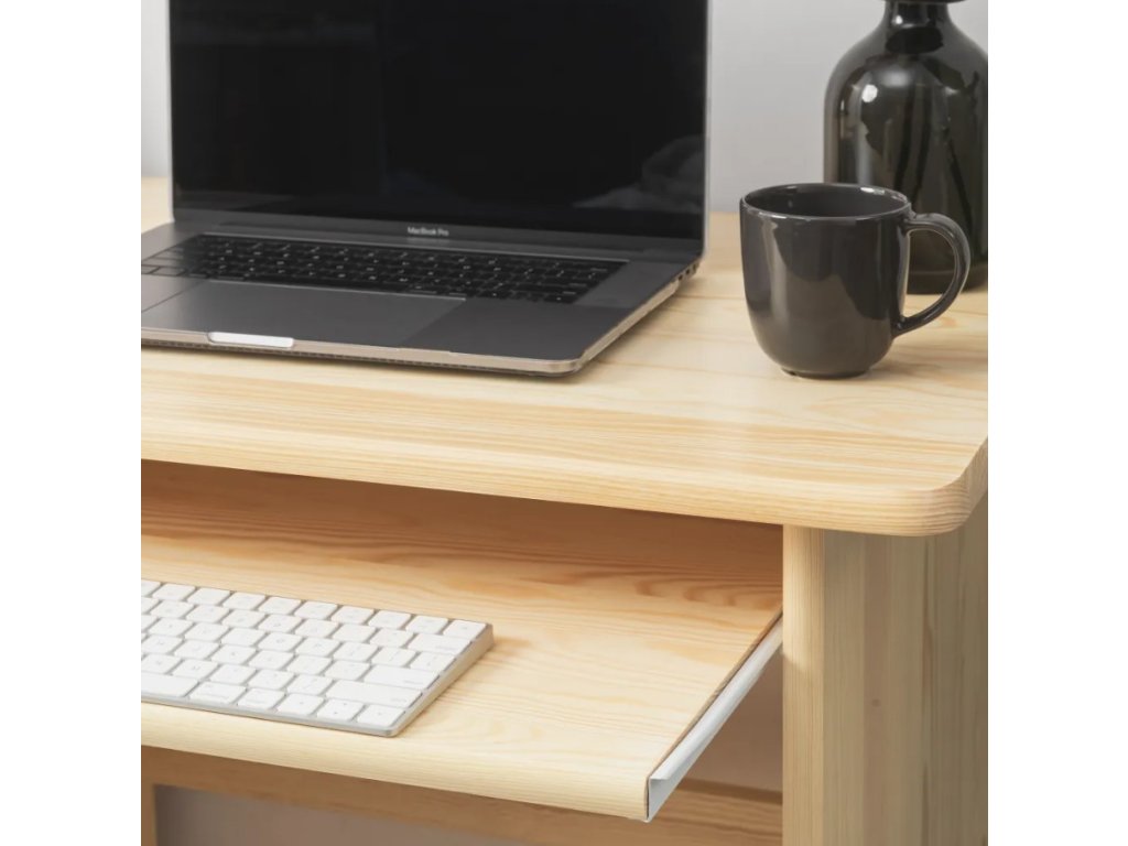 Stôl má vlastnú pracovnú plochu s praktickou výsuvnou priečkou, ktorú oceníte nielen pri klávesnici počítača. Stolová zásuvka na koľajničkách s 2/3 výsuvom a policovou skriňou. Stôl sa vyznačuje dôkladným spracovaním, vynikajúcou stabilitou a dlhou životnosťou. Pre tento stôl odporúčame stoličky z borovice