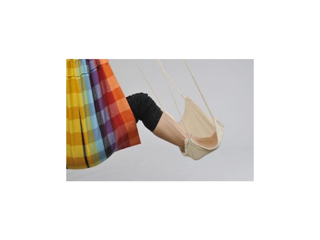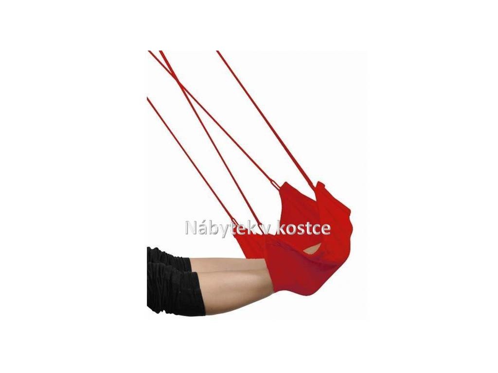 Červené závesné kreslo Otoman je vyrobené zo 100 % bavlny s vlastnosťami, ako je mäkkosť a priedušnosť. Poťah je v mieste pripojenia výstupkov stožiara k nosnej ploche niekoľkokrát prešitý, čo zvyšuje jeho odolnosť. Pevné šnúry, ktoré sú prevlečené cez tieto očká, sa potom ľahko pripevnia k drevenému stĺpu závesného hojdacieho kresla.