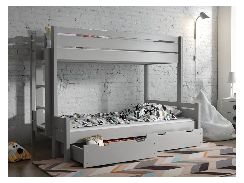 Patrová postel Jarda je určená až pro 3 osoby jakékoliv věkové kategorie. Je ručně vyrobená ze smrkového masivního dřeva, spojuje se pomocí mosazných šroubů a dřevěných kolíků. Postel vyniká svou robustní a odolnou konstrukci lůžka, má masivní a stabilní nohy (4,5 x 9 cm). Z hlediska bezpečnosti oceníte zaoblené hrany a bezpečnostní bariéry (15cm, přední i zadní). Součásti postele jsou 2 hluboké a prostorné zásuvky na kolečkách, které jdou zcela vytáhnout z pod postele. Na lakování postele jsou použity ekologické barvy ředitelné vodou, díky kterým si postel zachová hezký a dlouhotrvající lesk.