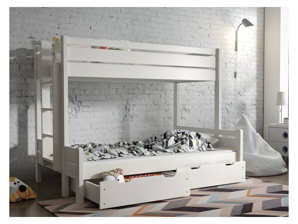 Patrová postel Jarda je určená až pro 3 osoby jakékoliv věkové kategorie. Je ručně vyrobená ze smrkového masivního dřeva, spojuje se pomocí mosazných šroubů a dřevěných kolíků. Postel vyniká svou robustní a odolnou konstrukci lůžka, má masivní a stabilní nohy (4,5 x 9 cm). Z hlediska bezpečnosti oceníte zaoblené hrany a bezpečnostní bariéry (15cm, přední i zadní). Součásti postele jsou 2 hluboké a prostorné zásuvky na kolečkách, které jdou zcela vytáhnout z pod postele. Na lakování postele jsou použity ekologické barvy ředitelné vodou, díky kterým si postel zachová hezký a dlouhotrvající lesk.