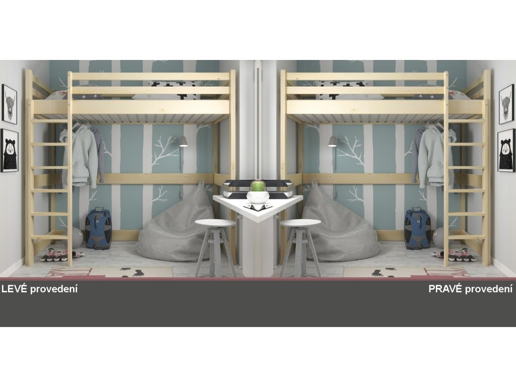 Vyvýšená postel ANDY je vhodná zejména do menších pokojů, kde využijete praktický postel pod postelí, kde se dá vložit skříňka, stůl, křeslo nebo skříň s maximální výškou 151 cm. Ocenitelný je robustní a stabilní žebřík.