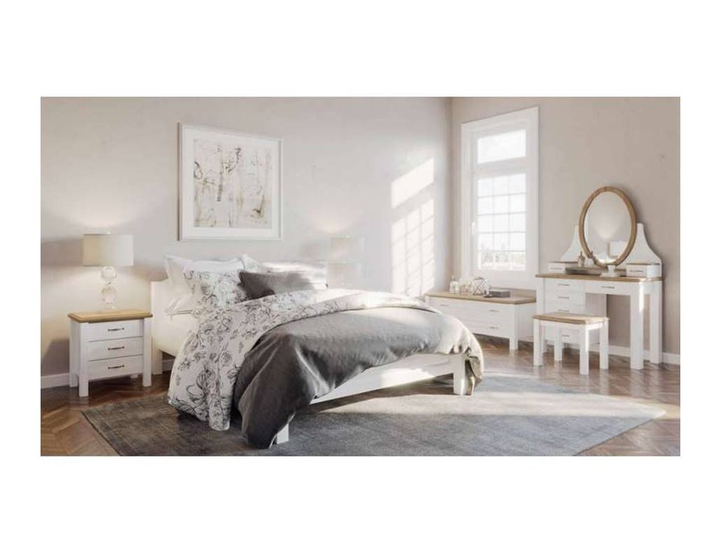 Biela romantická posteľ AUSTIN sa dodáva s dreveným rámom a dreveným roštom. Matrace nie je súčasťou balenia. Posteľ sa dodáva bez nočných stolíkov.