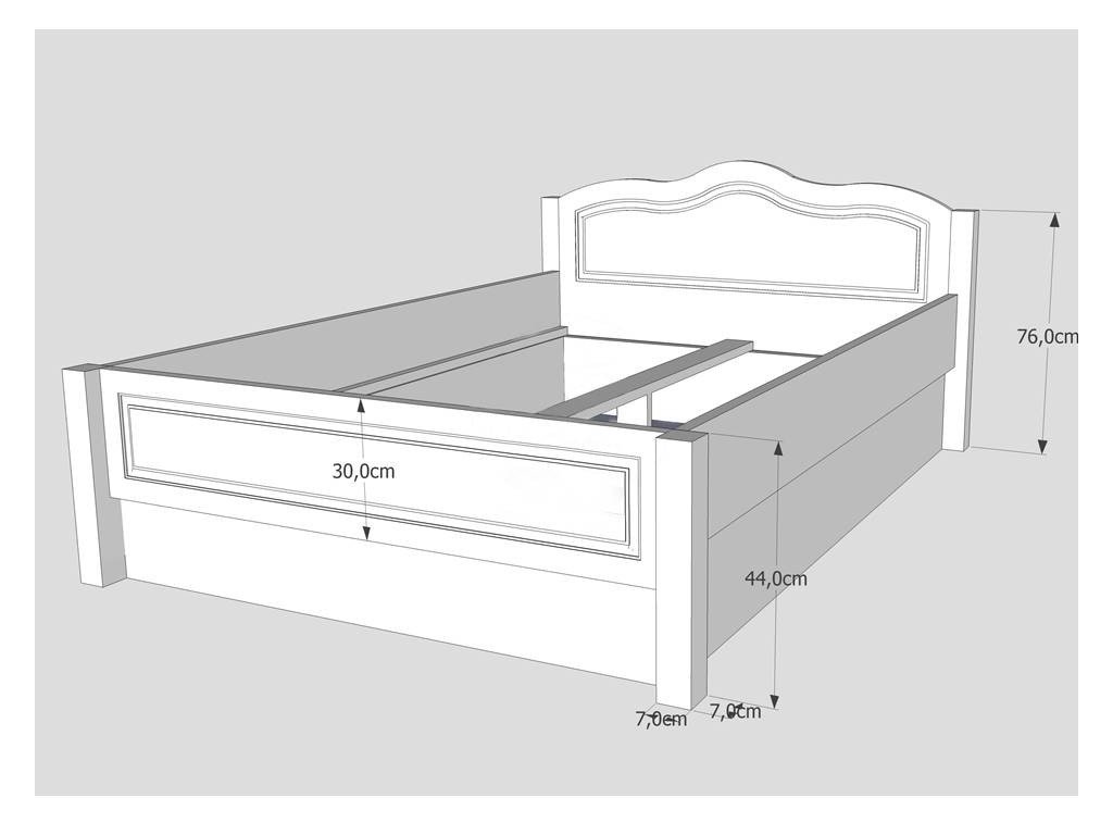 Biela romantická posteľ AUSTIN je vyrobená z masívneho borovicového dreva, ošetrená farbou a následne lakom.