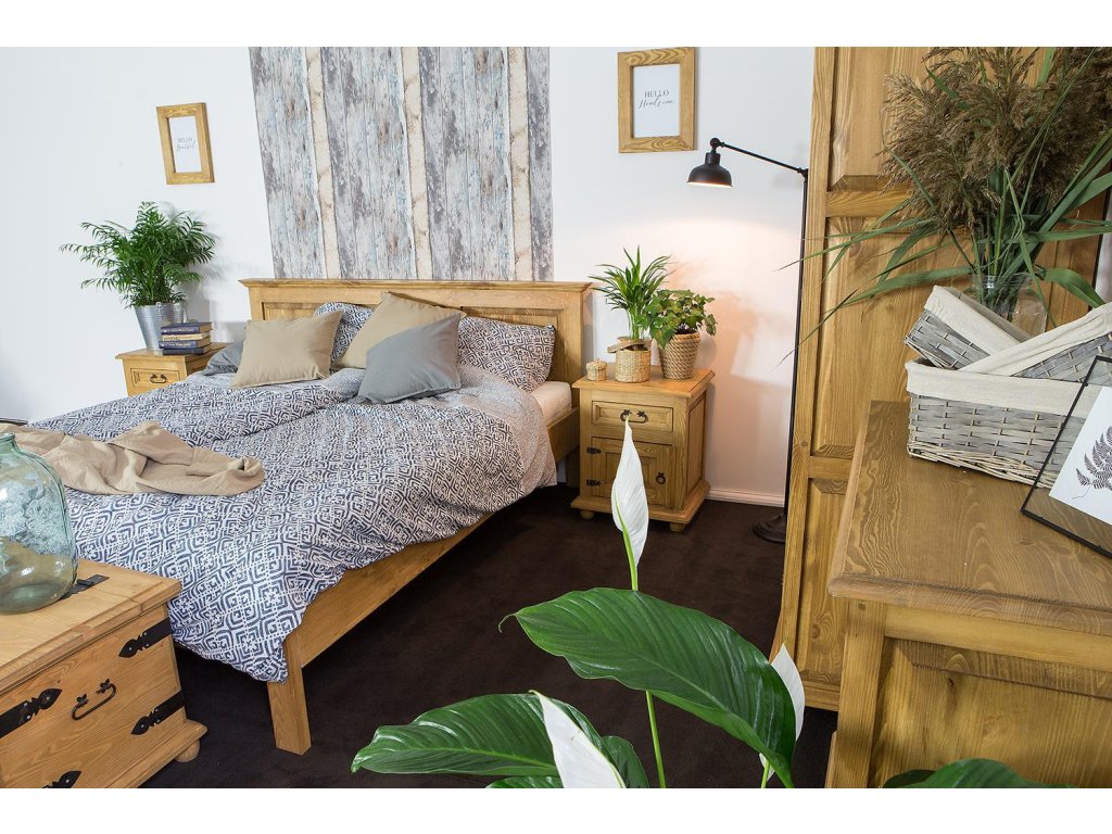 Rustikálna posteľ CORDOBA je vyrobená z masívneho borovicového dreva, ktoré do vášho domova prinesie teplé tóny a nádhernú vôňu. Použitie vysokokvalitného vosku na prírodnej báze tiež pomáha chrániť nábytok a dodáva drevu jeho osobitnú krásu.