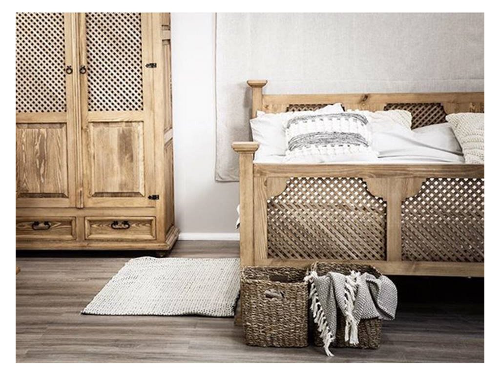Rustikálna posteľ CORDOBA je vyrobená z masívneho borovicového dreva, ktoré do vášho domova prinesie teplé tóny a nádhernú vôňu. Použitie vysokokvalitného vosku na prírodnej báze tiež pomáha chrániť nábytok a dodáva drevu jeho osobitnú krásu.
