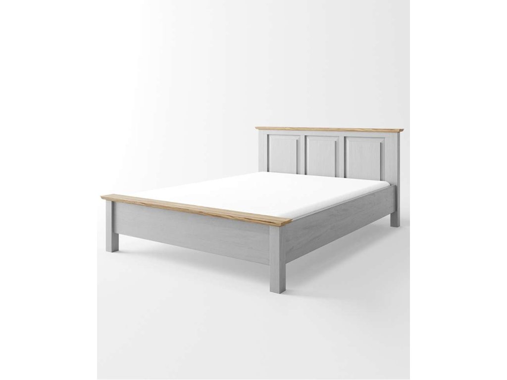 Posteľ Hacienda Grey je ošetrená sivou akrylovou farbou a hnedé časti sú ošetrené voskom medovej farby.