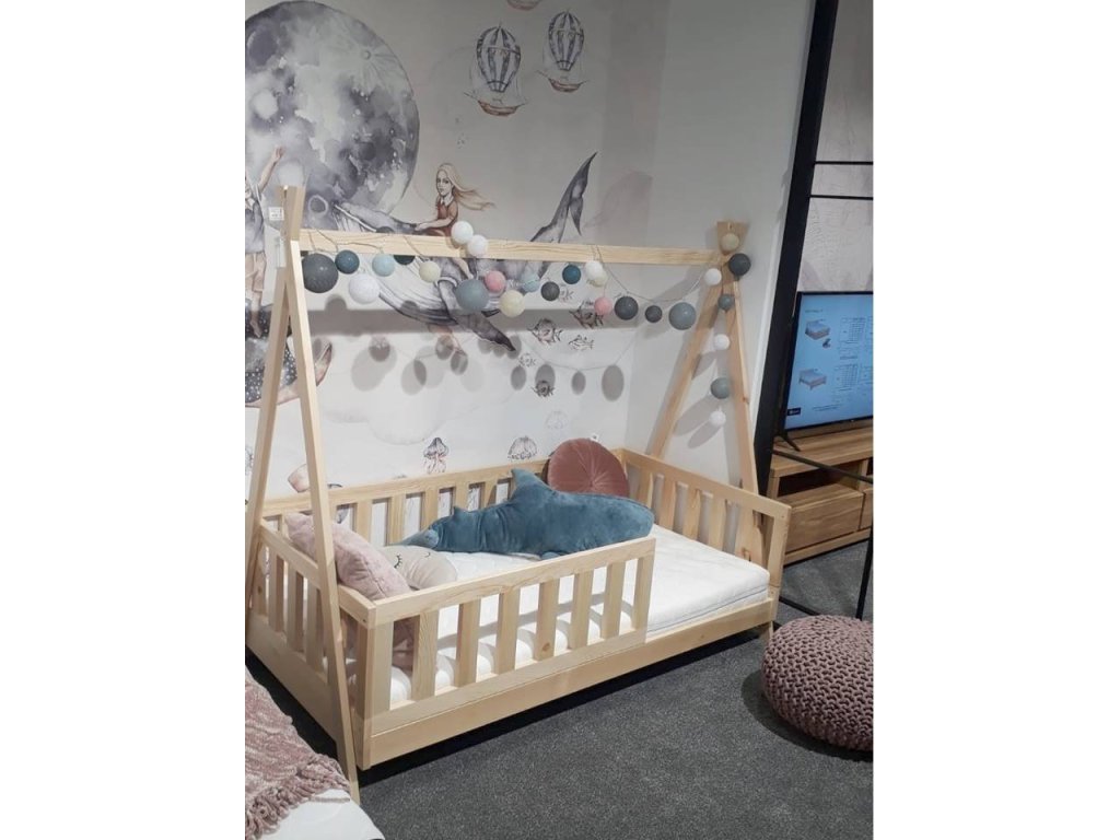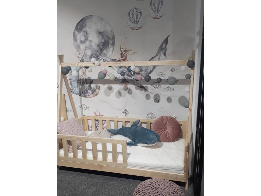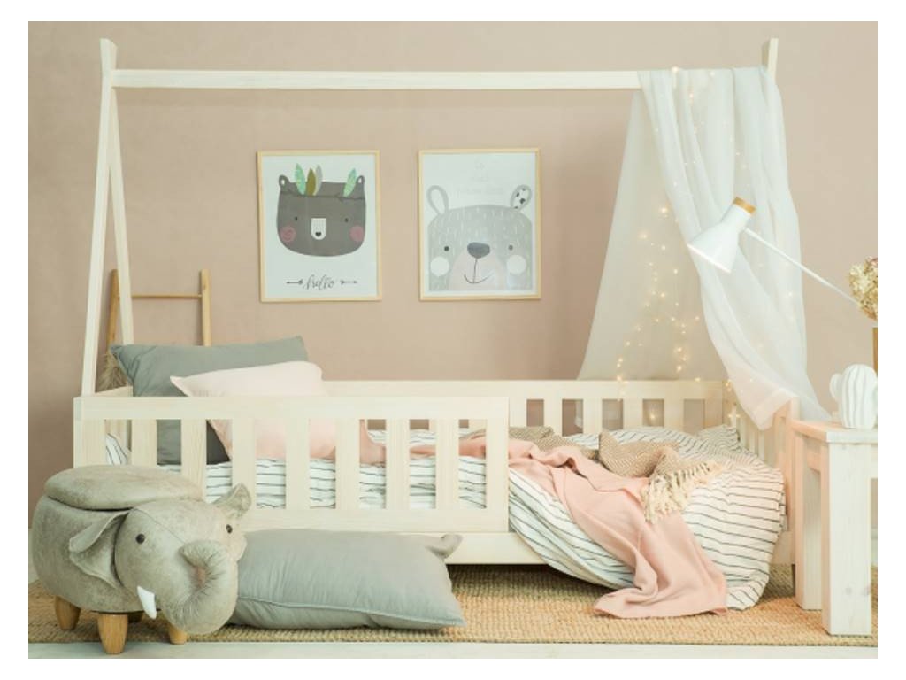 Detskú posteľ MÁŠA si zamiluje každé dieťa. Dizajn postele je štylizovaný do tvaru domčeka, a ak cez ňu prehodíme prikrývku alebo dekoračnú látku, môžeme pre svoje deti vykúzliť domček alebo nebo.
