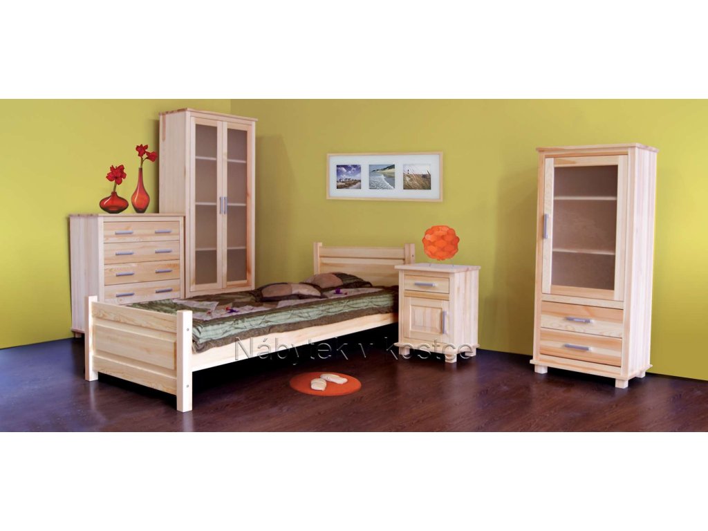 Posteľ ŠUMAVA 110 je vyrobená z kvalitného borovicového dreva v prírodnej farbe. Je ošetrený bezfarebným lakom, ktorý chráni pred drobnými škrabancami a zároveň dáva vyniknúť prirodzenej štruktúre dreva. Vďaka vyvýšenému čelu vyzerá táto posteľ robustne, ale zároveň moderne. Súčasťou postele ŠUMAVA 110 je aj kvalitný drevený rošt. Matrac nie je súčasťou balenia, ale môžete si ho vybrať z našej širokej ponuky. Nábytok je ošetrený lakom SOPUR.