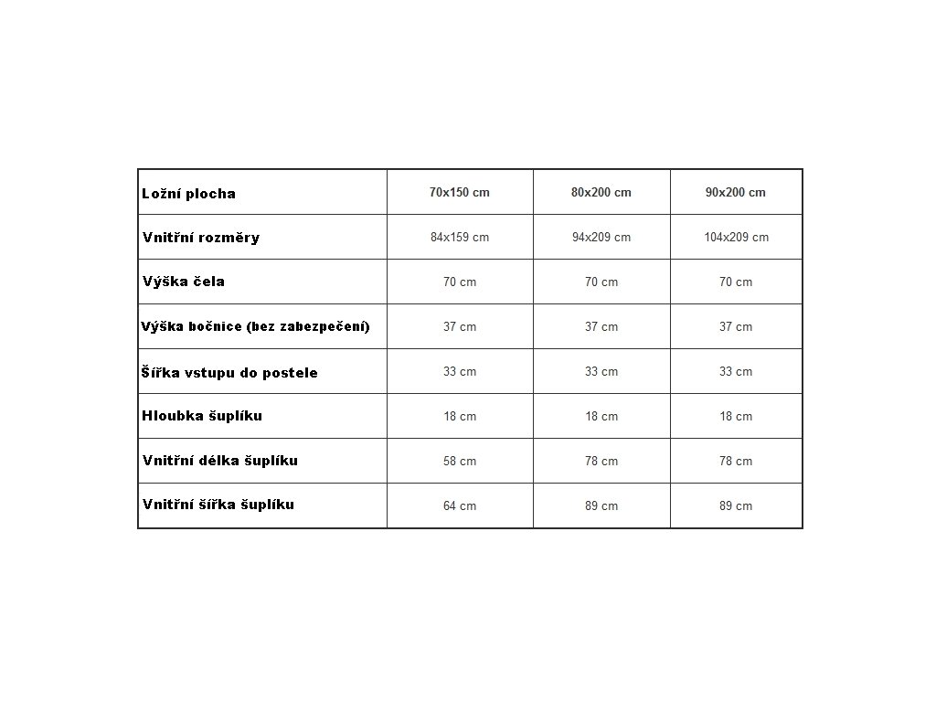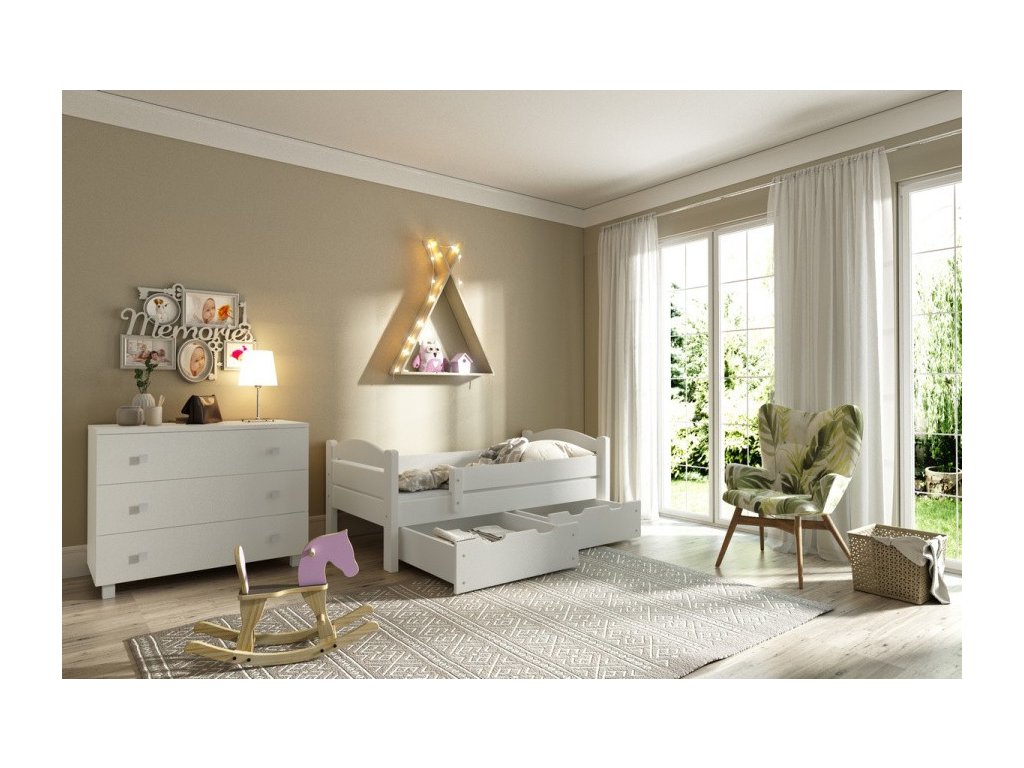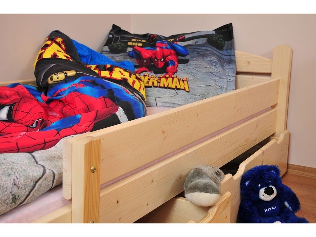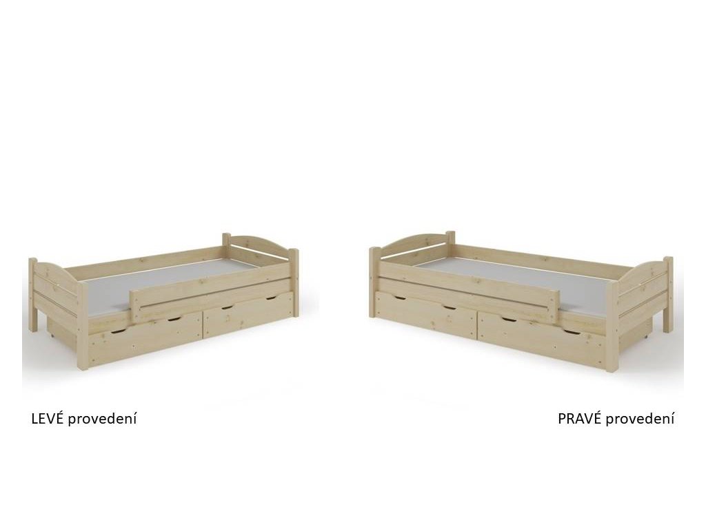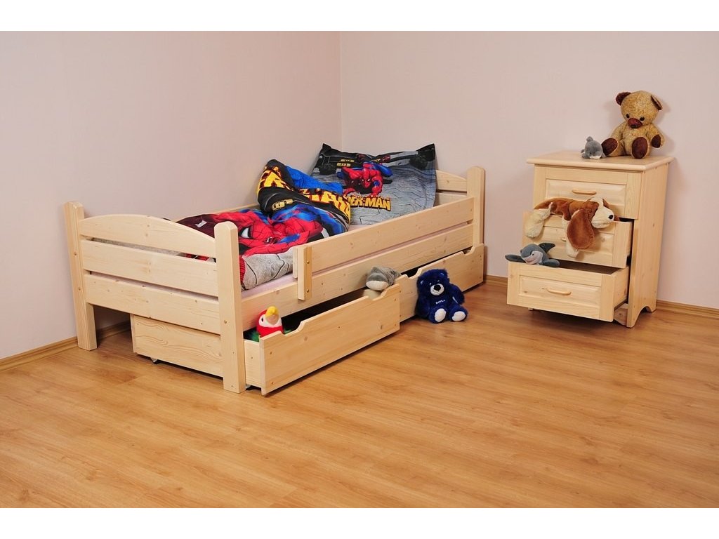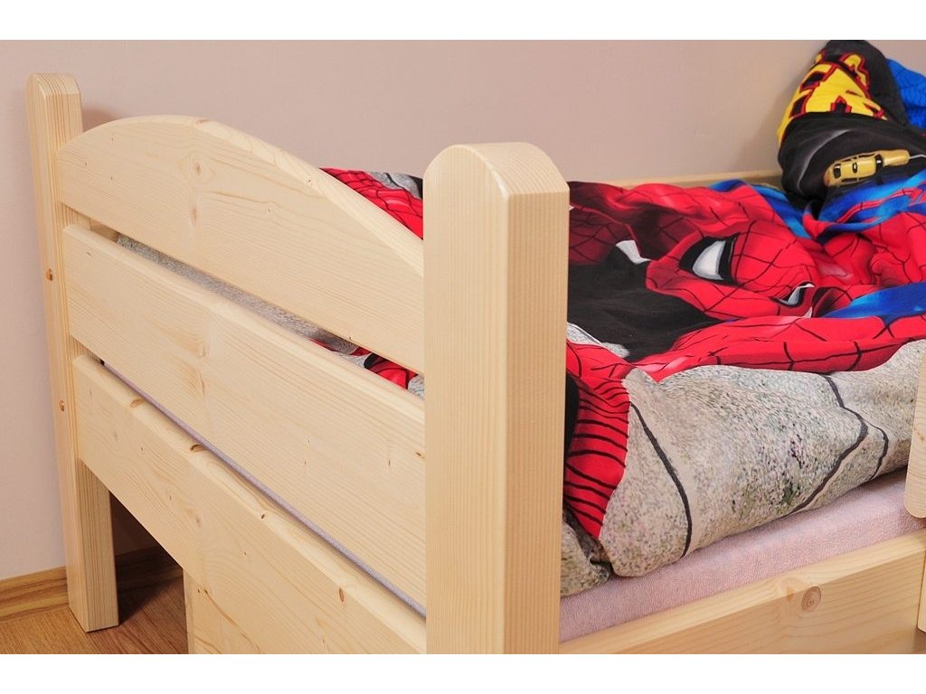 je ideálnym riešením pre rodičov, ktorí hľadajú funkčnú a bezpečnú posteľ pre svoje deti. Vďaka bezpečnostným zábranám, ktoré sa dajú ľahko odstrániť, je možné získať štandardné jednolôžko. Súčasťou postele sú dve priestranné zásuvky na kolieskach, ktoré sú ideálne na uloženie posteľnej bielizne alebo hračiek pre deti. Posteľ z masívu Matěj je vyrobená z masívneho smrekového dreva. Zaoblené hrany sú cenené ako ochrana pred možným poranením. Posteľ má pevnú a odolnú konštrukciu a masívne nohy (4,5 x 9 cm).