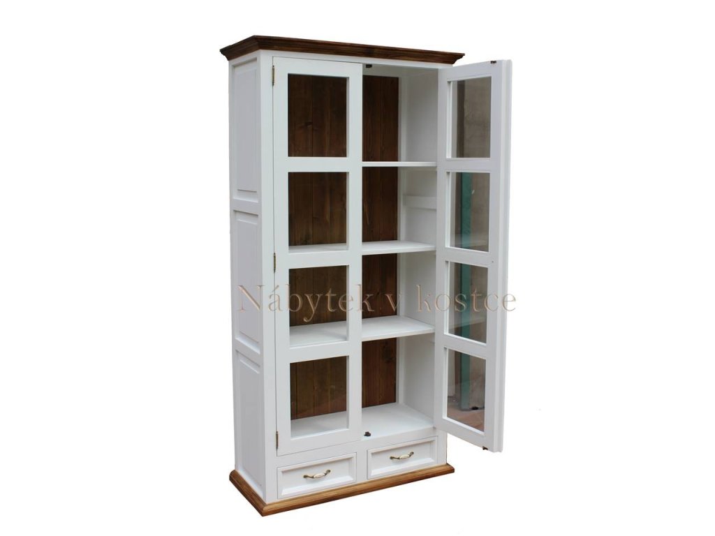 Rustikálna vitrína SWEET HOME patrí medzi obľúbené produkty našich stálych zákazníkov. Vitrína je vyrobená z masívneho borovicového dreva a ošetrená bielou vodou riediteľnou farbou alebo bielo-hnedou farebnou kombináciou. Hnedé povrchy možno ošetriť voskom alebo lakom. Drevo sa používa aj na výsuvy zásuviek a zadnú stranu, vďaka čomu vitrína vyzerá naozaj luxusne a štýlovo.