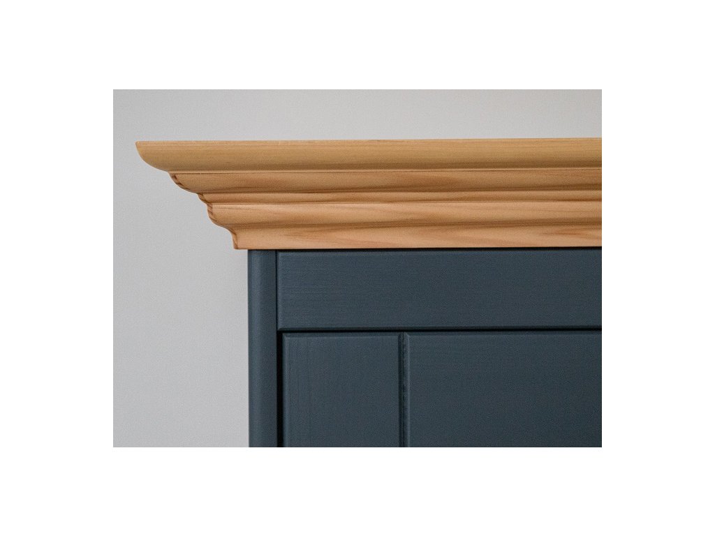 Komoda BELLUNO graphite 4D z provensálskeho dreva je vyrobená z masívnej fínskej borovice a ošetrená vodou riediteľnou farbou v grafitovej farbe, ktorá je dokonalým kontrastom k svetlým stenám a dodáva interiéru eleganciu a štýl. Vrchná doska je ošetrená moridlom a lakom.