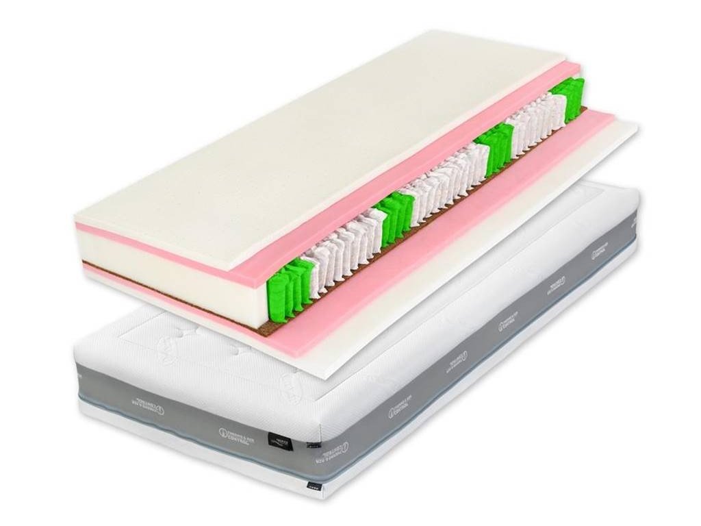 - Viacnásobné vrecko. Pružinové jadro navrhnuté v 7 anatomických zónach presne podopiera a kopíruje telo v každej polohe. Pevný penový rám pre konštrukčnú stabilitu a pohodlné vstávanie.