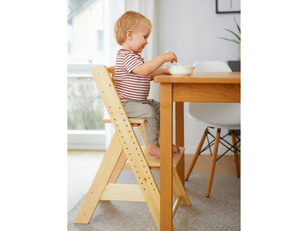 Vďaka tejto inovatívnej funkcii môžu aj najmenšie deti pohodlne sedieť na štandardne vysokej stôl, ktorý podporuje ich správne umiestnenie pri jedení alebo kreslení.
