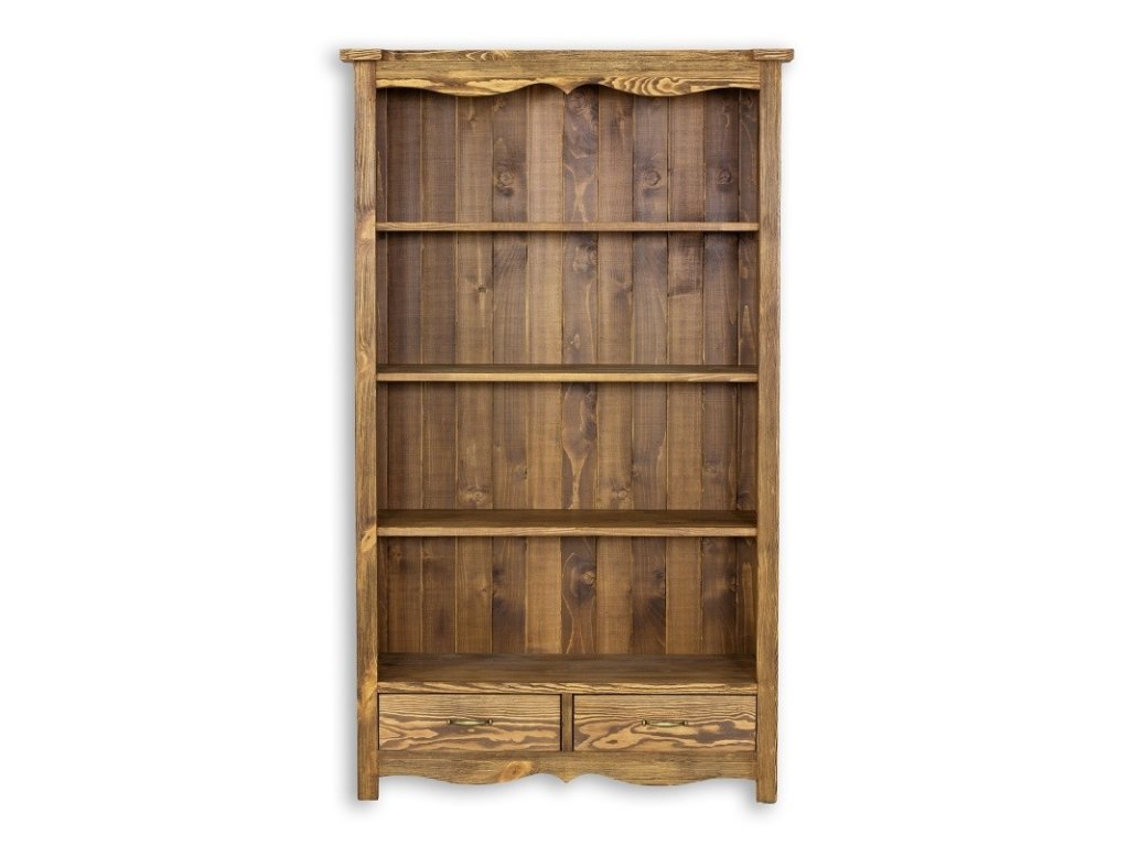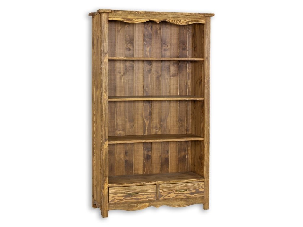 Regál WESTERN 12 retro je vyrobený z kvalitného borovicového masívu. Zadná časť regálu je tiež vyrobená z masívneho dreva. Skladá sa z 3 políc, pod ktorými sa nachádza praktická zásuvka so štýlovými starozlatými úchytkami. Hornej časti komody dominuje pôvodný oblúk.