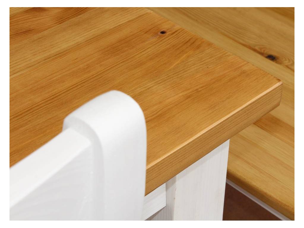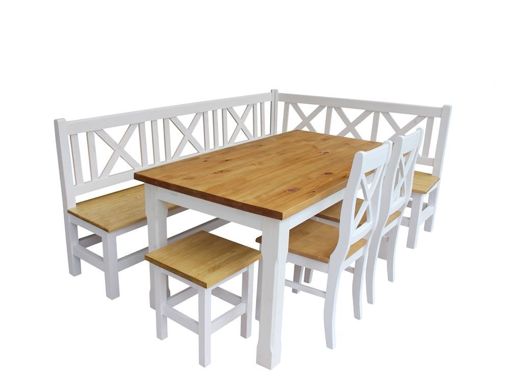 Rohová jedálenská súprava SWEET HOME je krásny kus nábytku do kuchyne a jedálne, ktorý je obľúbeným produktom našich stálych zákazníkov. Tento nábytok je vyrobený z masívneho borovicového dreva a ošetrený bielou vodou riediteľnou farbou. Hnedé časti možno ošetriť voskom alebo lakom.