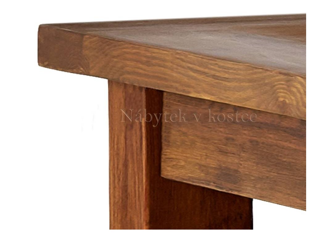 Rustikálny stôl MEXICANA MES1 je vyrobený z masívneho borovicového dreva a ošetrený voskom alebo lakom. Farebný variant si môžete vybrať sami podľa vzorkovníka (svetlohnedý med, gaštan, orech, tmavý dub, dymový dub alebo bezfarebný vosk). Uveďte tvar nôh (vyrezávané alebo rovné). Hrúbka nôh je 8 cm, stolová doska má 4 cm.