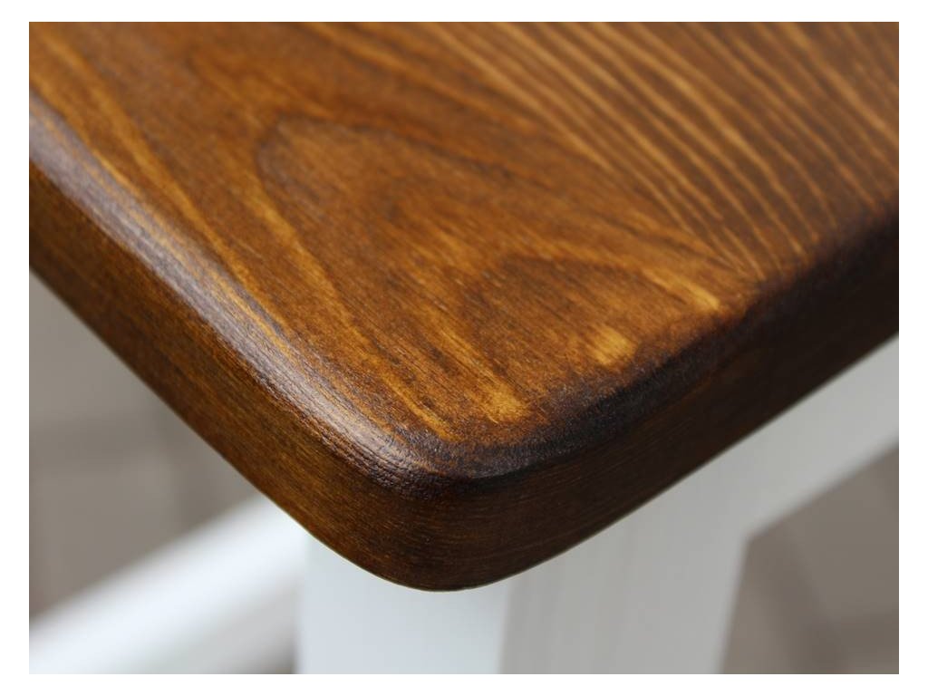 Rustikální barová židle je vyrobena z borovicového masivního dřeva a je ošetřena pouze bílou vodou ředitelnou barvou, anebo ve dvoubarevné kombinaci (viz.vzornik). Pro snažší údržbovat doporučujeme objednat nábytek s vrchní hnědou deskou v lakované verzi.
